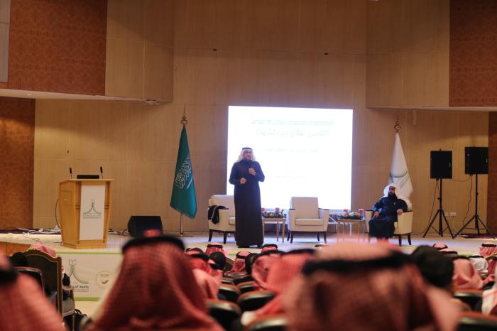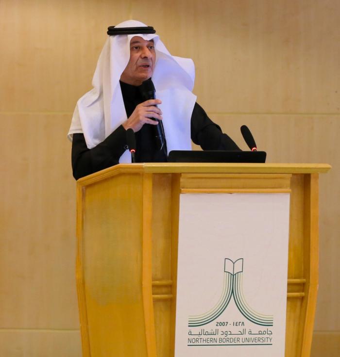 برعاية سعادة رئيس جامعة الحدود الشمالية الأستاذ الدكتور أحمد بن على الرميح؛ نظمت وحدة التوعية الفكرية بالجامعة محاضرة بعنوان: "تحديات الأمن الوطني في ظل المتغيرات المعاصرة " بمحورين تحدث في محورها الأول سعادة المستشار برئاسة أمن الدولة اللواء المهندس بسام بن زكي العطية، مبينًا التحديات التي مر بها التاريخ السعودي منذ التأسيس و الذي نعيش في ظلاله هذه الأيام حيث تتوشح المملكة بالفخر والعز بعقيدتها وتاريخها وأعمالها ومستقبلها الذي يزداد الوطن فيه عزًا، موضحًا أن المملكة تشكل مشروعًا حضارياً تنمويًا يفيض على أبنائها وعلى المنطقة و العالم بالخير والنماء برؤية ثقافية وطنية، بلا اطماع او اجندات أيدولوجية، في ظل ظروف معاصرة، متجددة وتنافس دولي وإقليمي في اطار المصالح ، وتبدل للقيم والولاءات، وصعود تيارات، وهبوط أخرى، يواجه الأمن الوطني الكثير من التحديات التي لا بد من التعامل معها ايجابياً وتطويعها في خدمة دولة الأمن والبناء والسلام.
