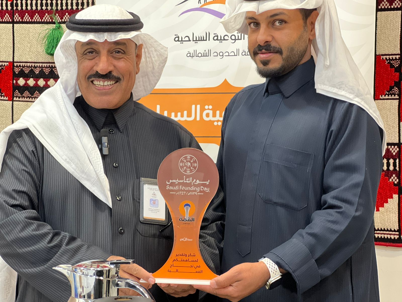 شاركت جمعية التوعية السياحية في الحدود الشمالية بحضور رئيس الجمعية الدكتور مطيران النمس بركن توعوي سياحي مع نادي القمة الرياضي للإحتفال بيوم التأسيس بالسوق الشعبي في عرعر وحظي الركن بزيارات وحضور كبير من قبل مسؤولين وإعلاميين وشعراء ومن مختلف شرائح المجتمع واستمعوا لشرح مفصل عن برامج الحمعية وأشادوا بها كما تم تكريم الجمعية من قبل رئيس نادي القمة الرياضي الأستاذ يوسف محمد العنزي واستلم درع التكريم نائب رئيس الجمعية الأستاذة ريم الخلف .