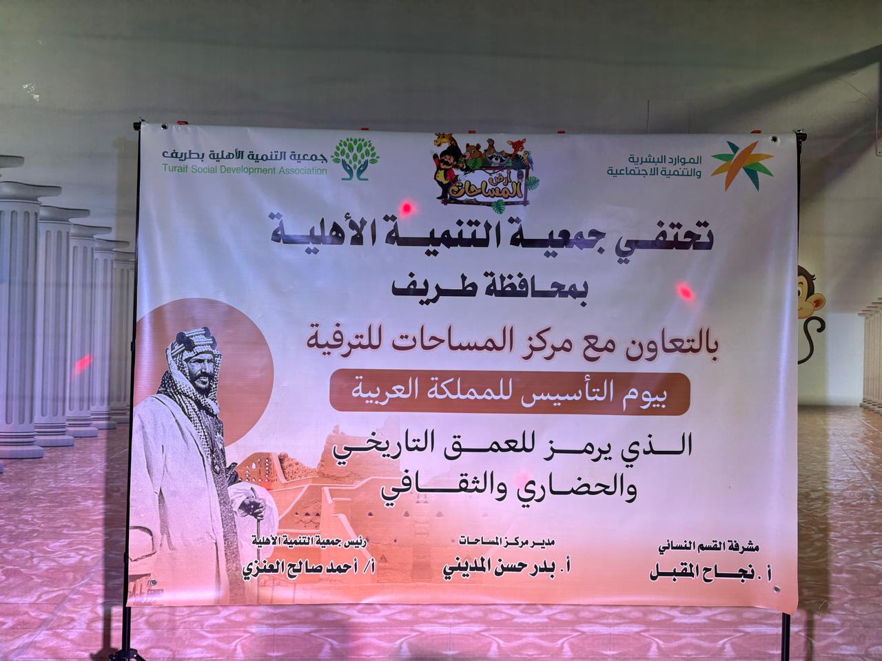احتفت جمعية التنمية الأهلية بمحافظة طريف بمتابعة من رئيس الجمعية الأستاذ أحمد بن صالح العنزي وبالتعاون مع مركز أرض الساحات فعالية يوم التأسيس