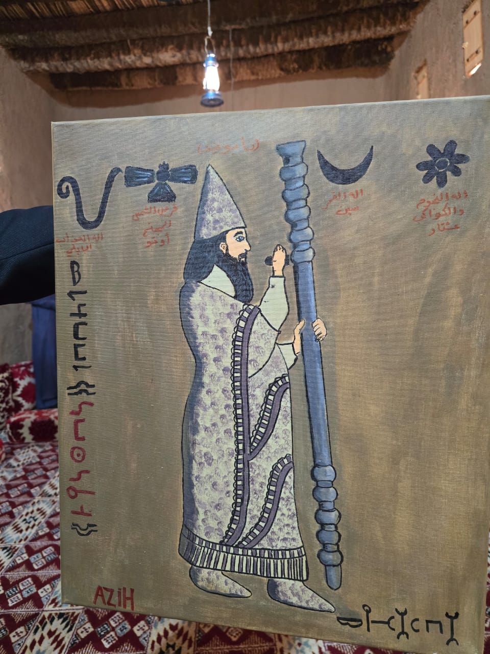 وبلمسة إبداعية جسدت هذا الانجاز احدالفنانات الشتكيليات في محافظة الحائط بمشاركتها بلوحه رسمت فيها نقش نابونيد ابداع بالريشه واللون .