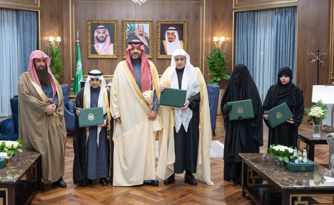 كرَّم صاحب السمو الملكي الأمير فيصل بن خالد بن سلطان بن عبدالعزيز، أمير منطقة الحدود الشمالية، في مكتبه اليوم، الفائزين بجائزة الملك سلمان المحلية لحفظ القرآن الكريم وتلاوته وتفسيره، الذين حققوا مراكز متقدمة على مستوى المملكة.