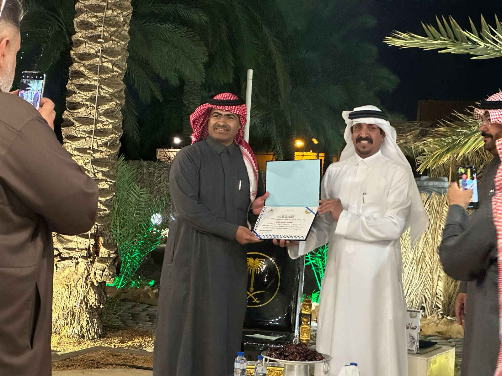 وفي ختام الفعالية، قام رئيس صالون الجوف الثقافي، الأستاذ حمدي الشراري، بتكريم ضيف الندوة الأستاذ حسين الخليفة، والأستاذ محمد حلوان الشراري، بالإضافة إلى الأستاذ أحمد العرفج، صاحب استضافة غريس مبارك.