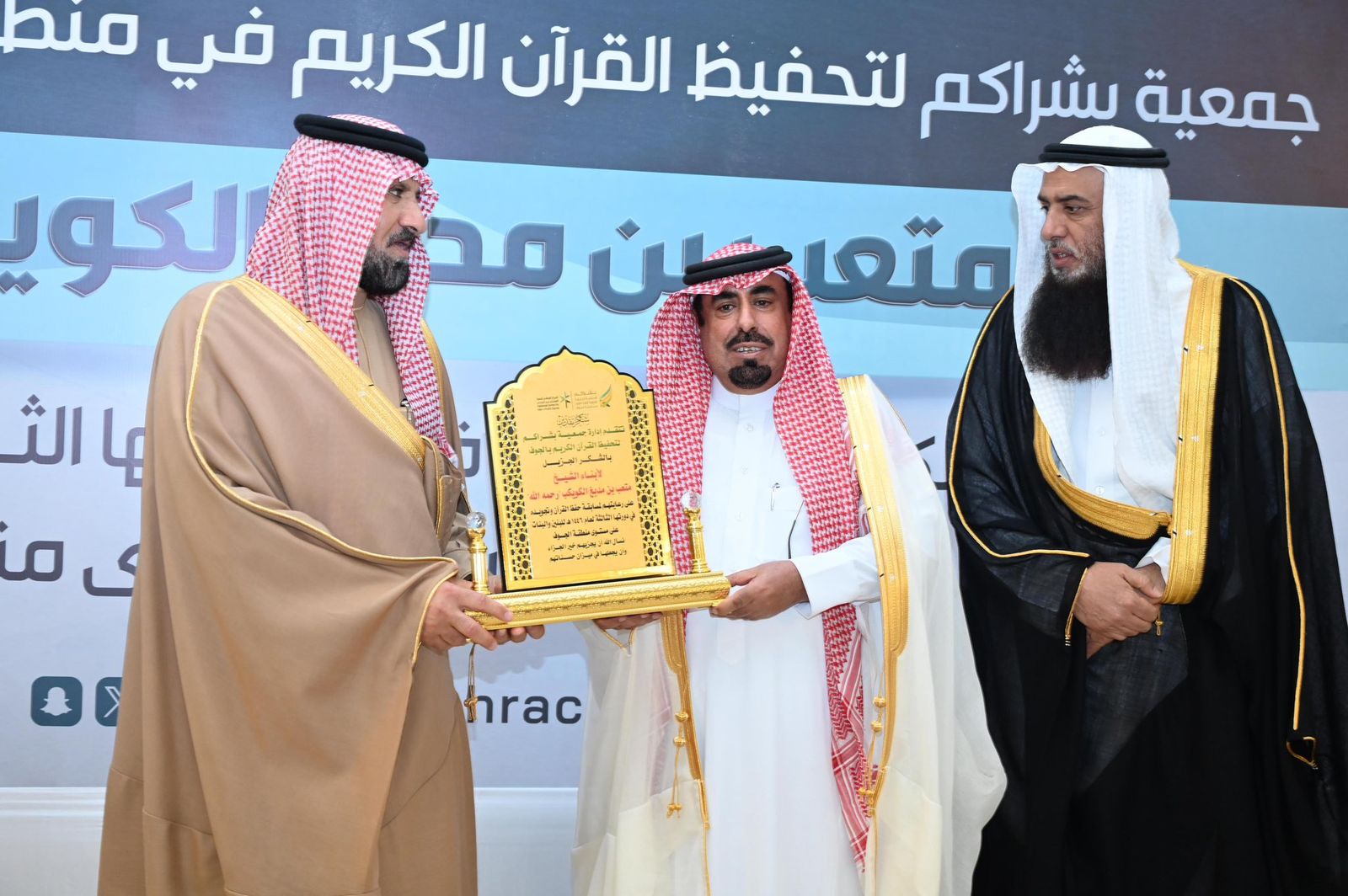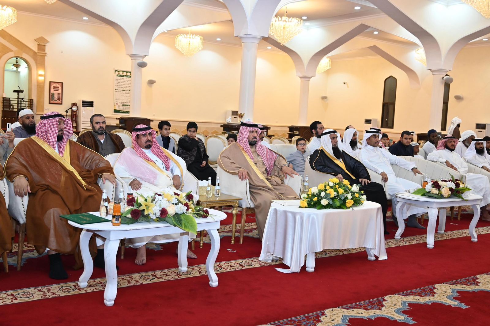 كرم وكيل إمارة منطقة الجوف حسين بن محمد آل سلطان، (34) طالبًا وطالبة من حفظة كتاب الله الكريم الفائزين في مسابقة متعب بن مدبغ الكويكب - رحمه الله - البالغ عددهم (300) متسابق ومتسابقة من مختلف جمعيات التحفيظ بالمنطقة، بإشراف جمعية بشراكم لتحفيظ القرآن الكريم بالمنطقة، وتجاوز مبلغ الجائزة (111.900) ريال, موزعة على 6 فروع للبنين والبنات، بحضور عدد من المسؤولين وأولياء أمور الطلبة، وذلك في جامع المدبغ بقارا.