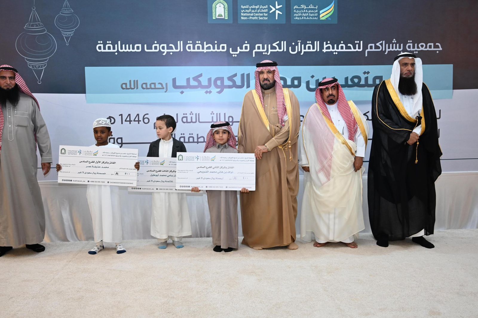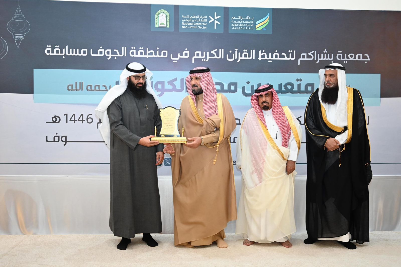 ثم سلم وكيل الإمارة حفظة كتاب الله جوائزَهم التشجيعيةَ والهدايا التذكارية، داعيًا الله لهم بالتوفيق والسداد، ومواصلة هذه الجهود في ظل ما تحظى بها جمعيات تحفيظ القرآن الكريم بالمنطقة من دعم واهتمام من سمو أمير منطقة الجوف.