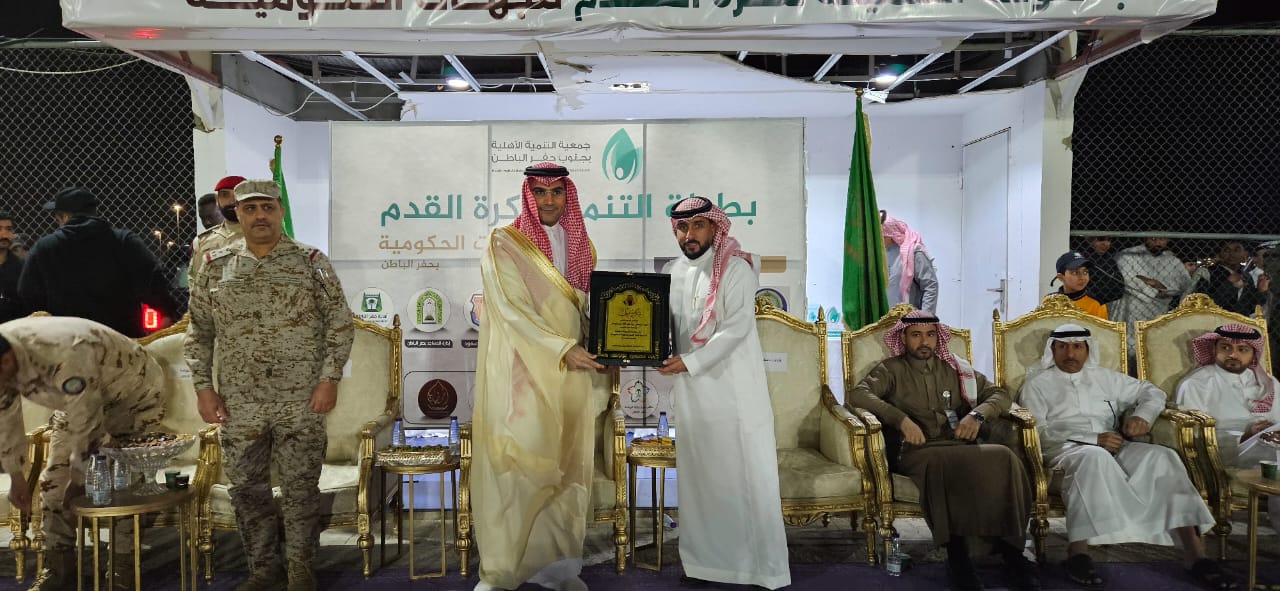 نيابةً عن صاحب السمو الأمير عبدالرحمن بن عبدالله بن فيصل، محافظ حفر الباطن، رعى سعادة أمين محافظة حفر الباطن، المهندس خلف بن حمدان العتيبي، المباراة النهائية لبطولة التنمية لكرة القدم للجهات الحكومية، التي أُقيمت مساء اليوم الأحد على ملعب الأمانة، وجمعت بين فريقي القوات البرية وقوة الطوارئ الخاصة.
