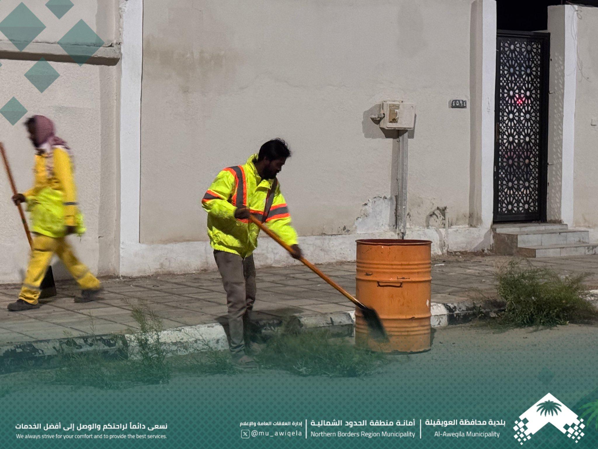 تقوم بلدية محافظة العويقيلة بجانب من أعمال إدارة الخدمات - قسم النظافة في حي المنار وشارع الملك عبدالله وشارع عبدالرحمن بن عوف والمتمثلة في رفع الأنقاض وقص الشوارع وكنس الشوارع ومعالجة عناصر مظاهر التشوة البصري. مستمرين في تحسين المشهد الحضري