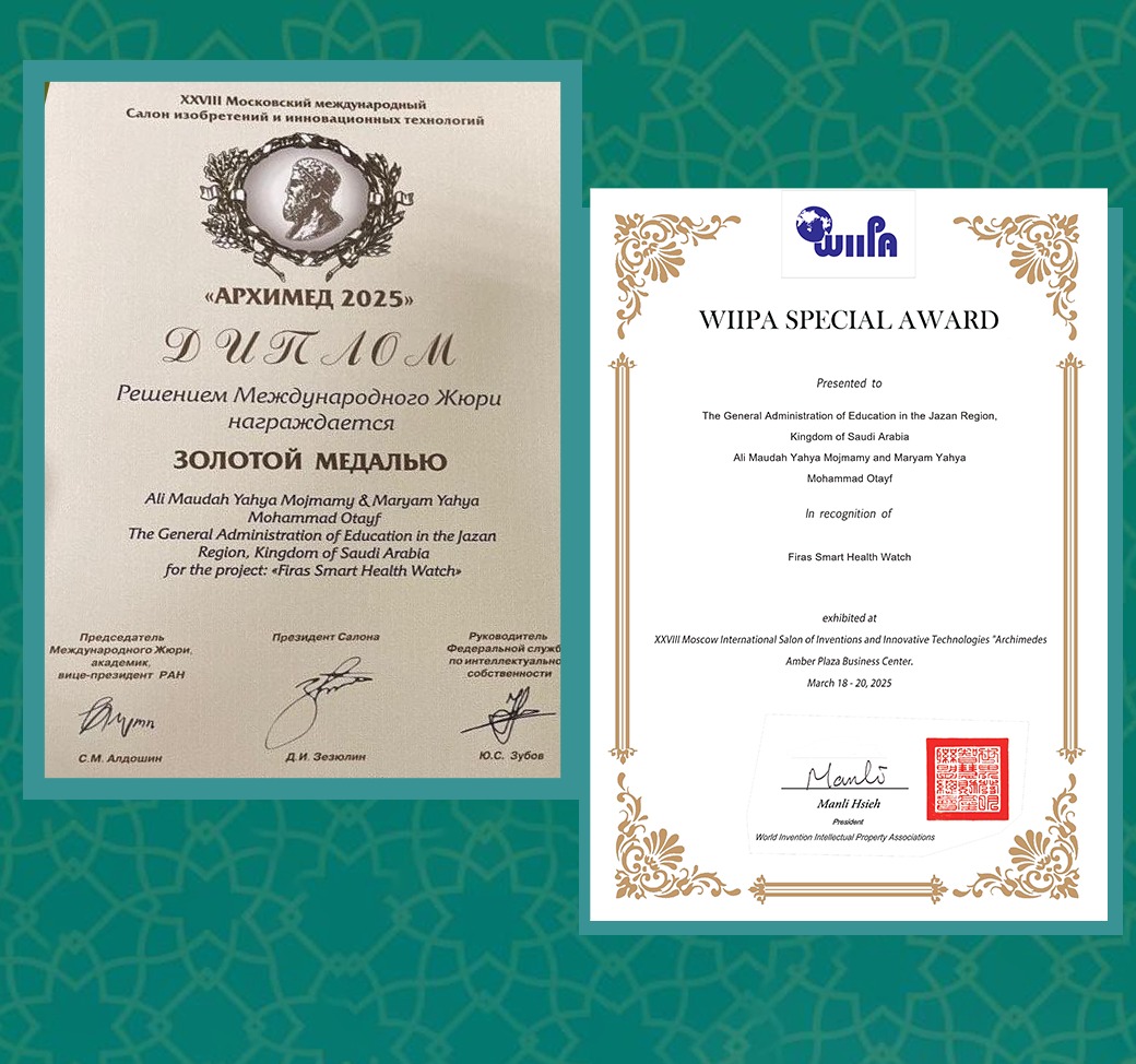 حققت المملكة العربية السعودية إنجازًا وطنيًا جديدًا يعزز مكانتها في مجال الابتكار العالمي، حيث حصدت الأستاذة مريم يحيى محمد عطيف والأستاذ علي معوضة مجممي، من منطقة جازان، ميداليتين ذهبيتين في معرض "أرخميدس الدولي للاختراعات 2025" الذي أقيم في العاصمة الروسية موسكو خلال الفترة من 18 إلى 20 مارس 2025، وذلك تقديرًا لاختراعهما "ساعة فراس الصحية الذكية للأطفال".