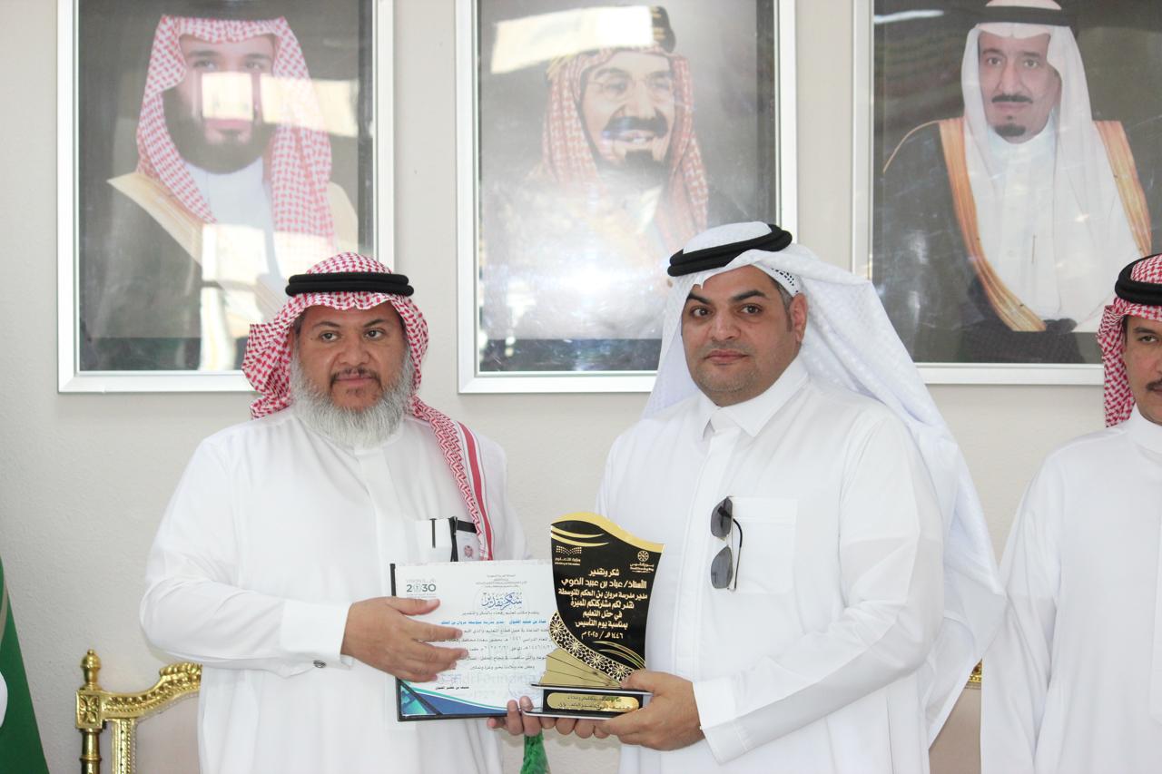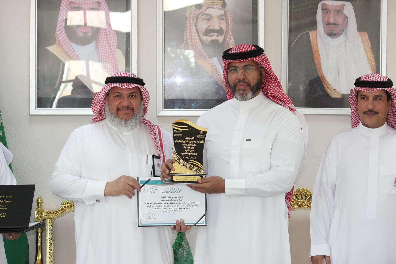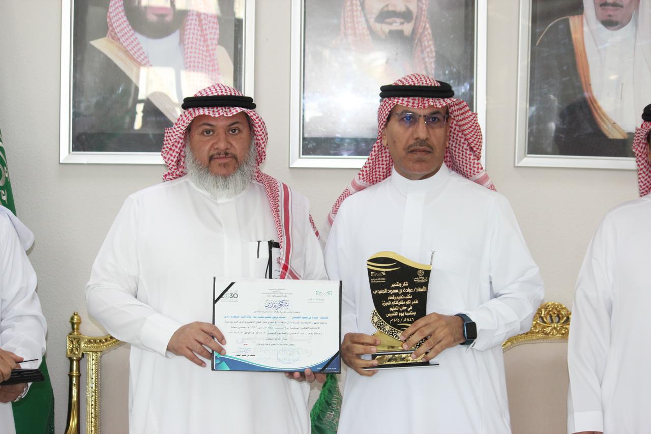 وفي لفتة وفاء، تم تكريم العامل مسعود عبدالله، الذي أمضى 22 عاماً في خدمة المكتب، وذلك من خلال تقديم هدية تعكس التراث السعودي الأصيل، إلى جانب شهادة شكر تقديراً لإخلاصه وجهوده المستمرة. كما تم تقديم مبلغ مالي تكريماً له على سنوات العمل التي بذلها في خدمة المجتمع التربوي.