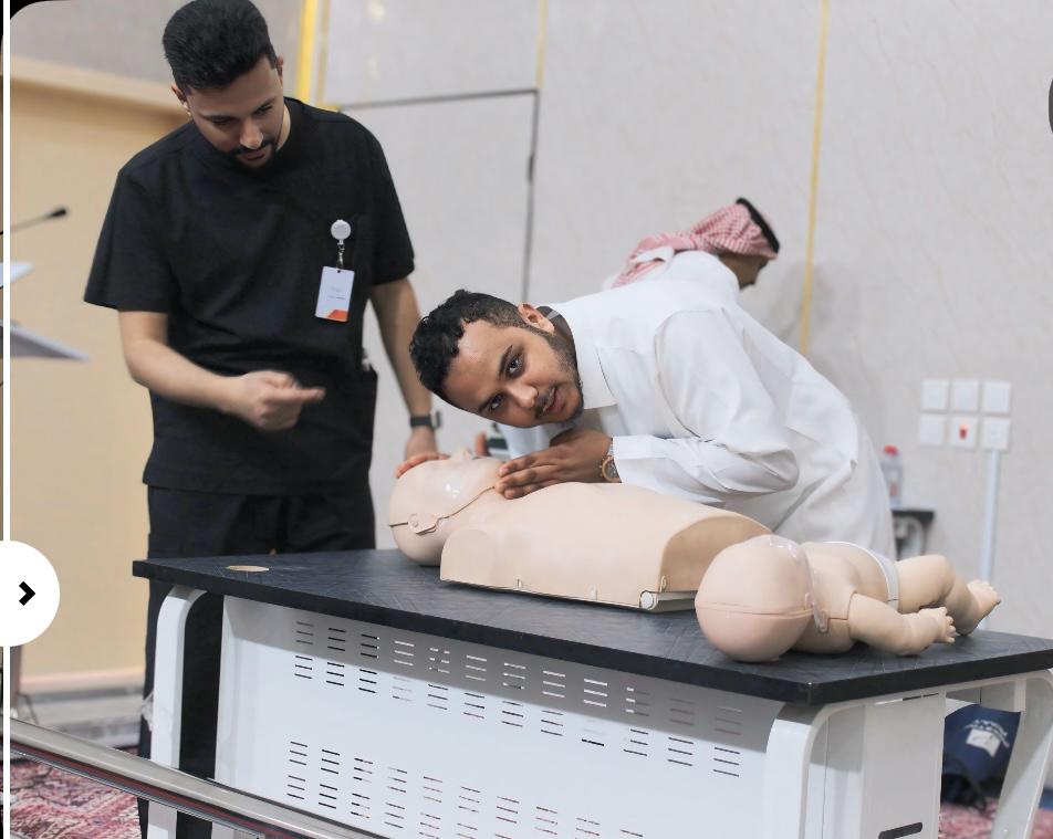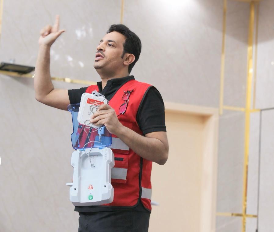 كما تحدث ايضاً المدرب رخيص بن غانم الشمري عن كيفية استخدام جهاز الصدمات الكهربية لتوقف القلب وكيفيته وطرق استخدامه وكيفية اذا اختنق مجرى التنفس لدى الكبار والرضع والطرق المستخدمه في هذه الحالات