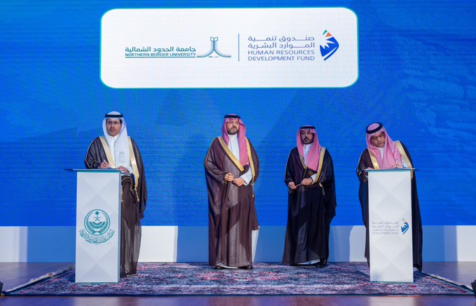 وشهد سموه توقيع اتفاقيتين بين الصندوق وكل من جامعة الحدود الشمالية، والمعهد السعودي التقني للتعدين؛ بهدف تمكين وتأهيل أبناء وبنات المنطقة وزيادة قدرتهم التنافسية في سوق العمل.