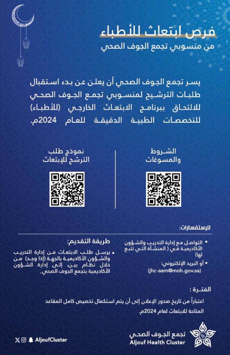 فرص ابتعاث للأطباء من منسوبي تجمع الجوف الصحي