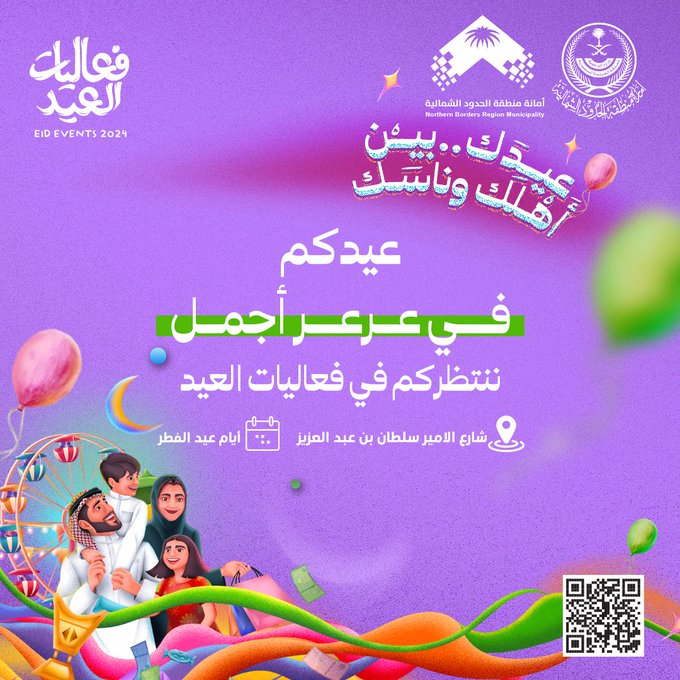 تنظم أمانة منطقة الحدود الشمالية مجموعة متنوعة من الأنشطة والفعاليات خلال عيد الفطر المبارك بمدينة عرعر .