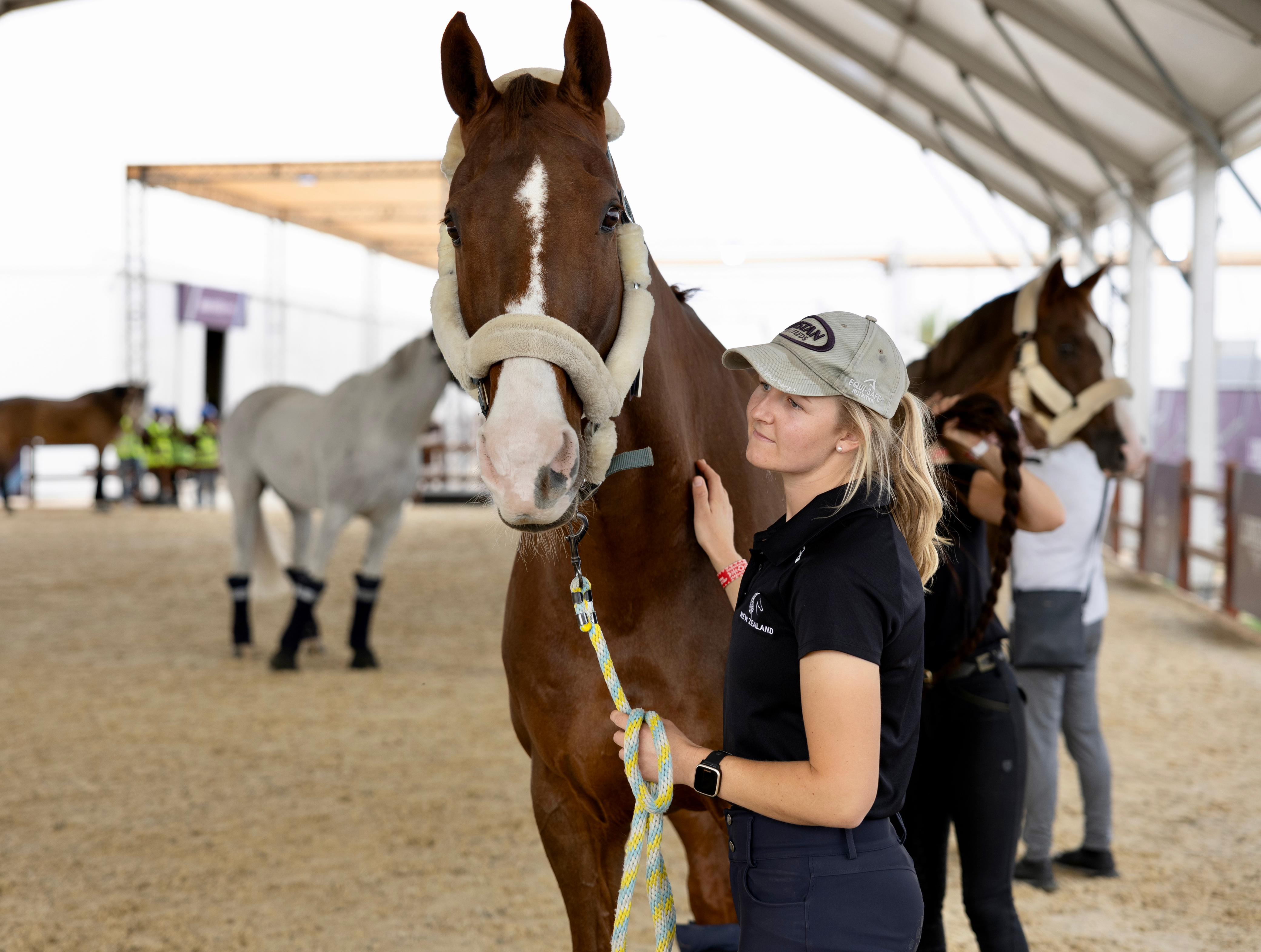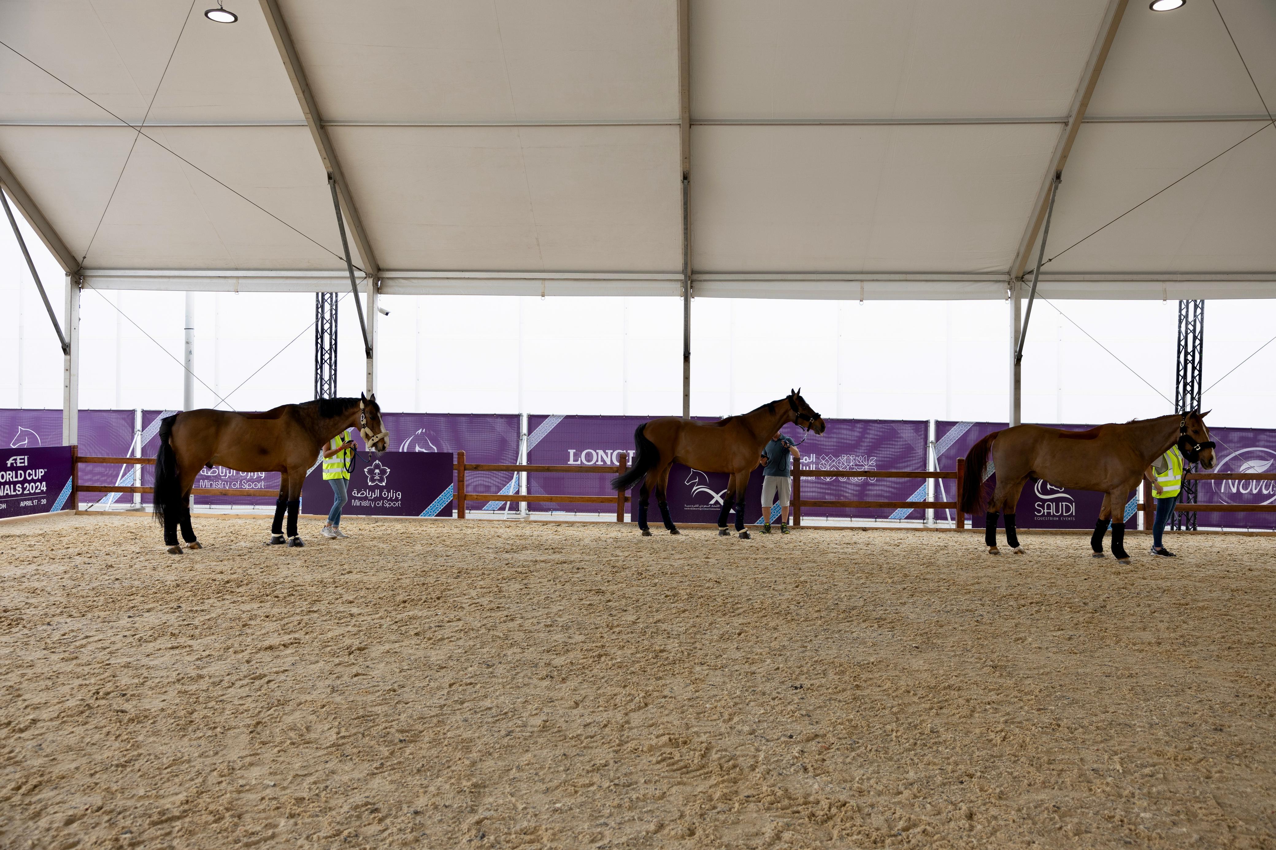وتم استقبال الخيل المشاركة ونقلها عبر شاحنات مخصصة الى الاسطبلات الخاصة بها في مقر البطولة بمركز الرياض الدولي للمعارض والمؤتمرات، حيث تعد من أغلي الخيول في العالم وتشارك برفقة نخبة فرسان العالم المشاركين في البطولة.