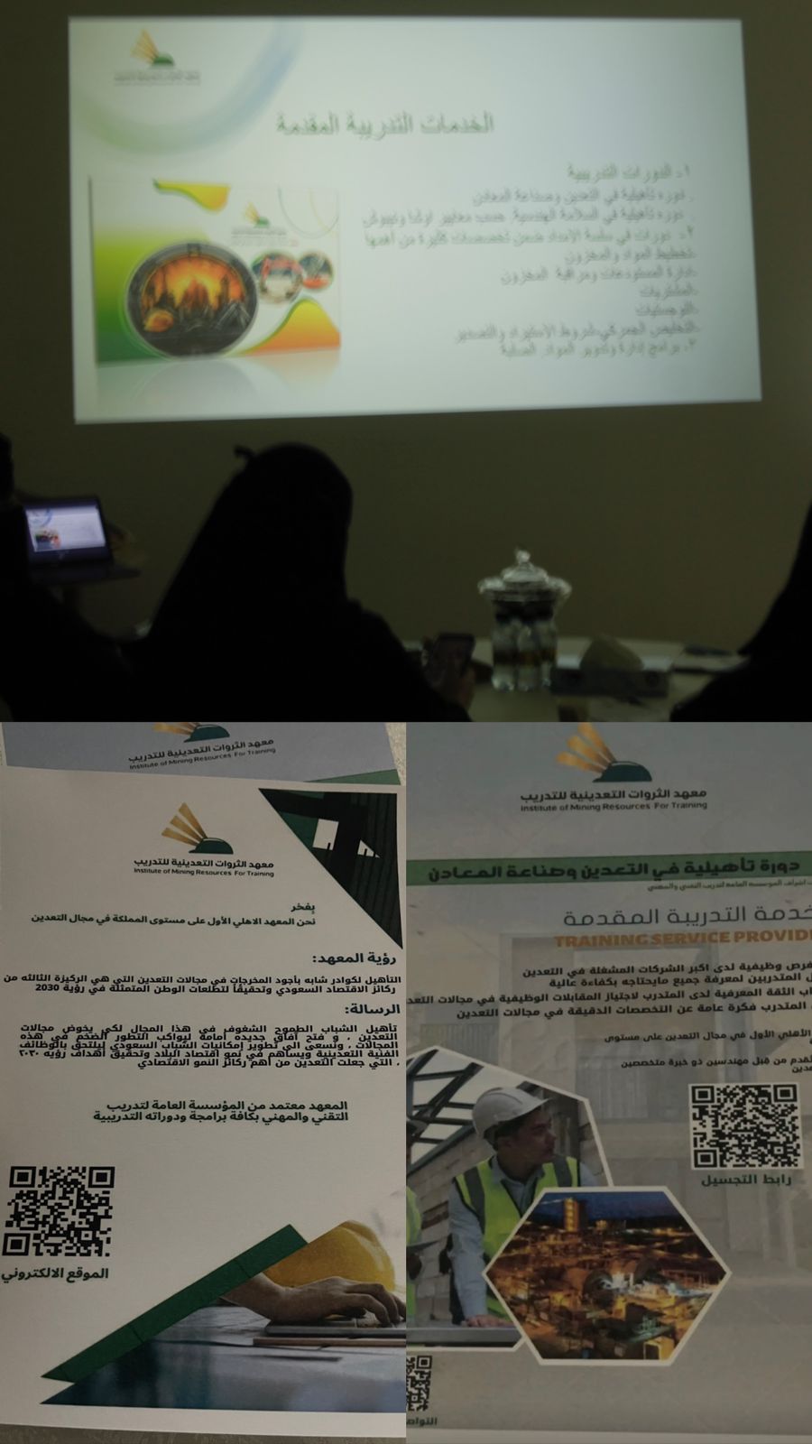 قام إدارة المعهد الثروات التعدينية للتدريب في الحدود الشماليه عرعر القاء التعريفي للمعهد وتوجهاته وخلق فرص وظيفية لدى اكبر الشركات وتأهيل المتدربين لمعرفة جميع مايحتاجه بكفاءة عالية وإعطاء المتدرب فكرة عامه عن التخصصات الدقيقة في مجالات التعدين في مقرها بحي الضاحية وهي المعهد الاول في مجال التعدين على مستوى المملكة .