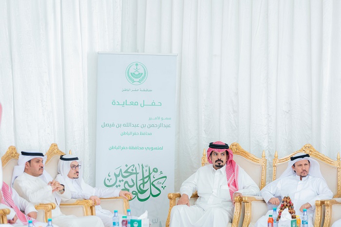 أقام صاحب السمو الأمير عبدالرحمن بن عبدالله بن فيصل محافظ حفرالباطن اليوم الاثنين حفل المعايدة السنوي لمنسوبي المحافظة بمناسبة عيد الفطر المبارك، وذلك في مقر الاحتفالات بمقر المحافظة.