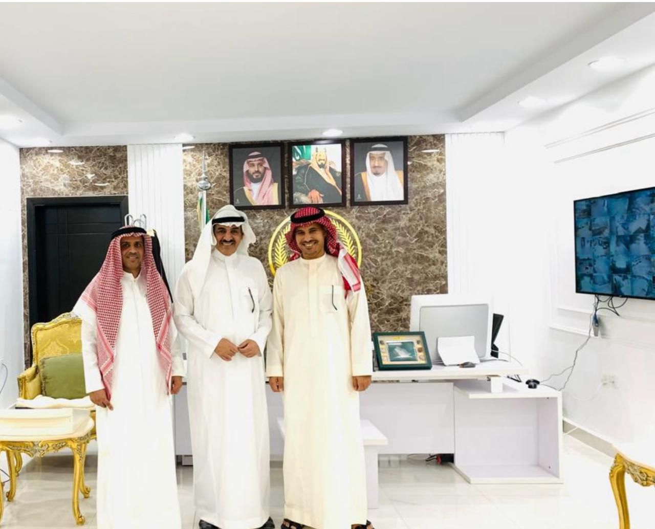 استقبل سعادة محافظ طريف الاستاذ بدر بن نجر الصقر هذا اليوم الاثنين الموافق 1445/10/8بمكتبه مدير التعليم الاستاذ ماجد حمود الرويلي ورئيس بلدية محافظة طريف الاستاذ محمد هلان الورده ومدير جوازات طريف العقيد جالس نهار البلعاسي ومدير مستشفى طريف العام خالد مهل الرويلي وممثلي وكالة الانباء السعوديه واس حيث قدمو التهنئه لسعادته بمناسبة عيد الفطر المبارك .