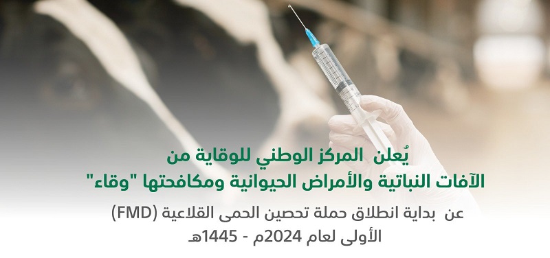 أطلق فرع المركز الوطني للوقاية من الآفات النباتية والأمراض الحيوانية ومكافحتها "وقاء" بمنطقة الحدود الشمالية اليوم، الحملة الوطنية الأولى ضد مرض الحمى القلاعية لهذا العام 2024م.