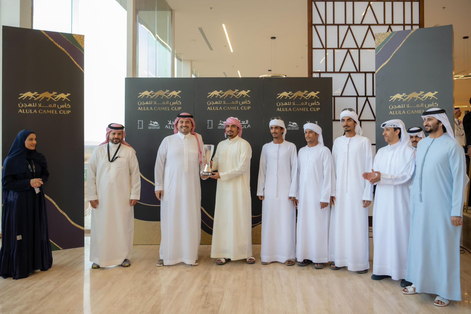 توج صاحب السمو الأمير فهد بن جلوي بن عبد العزيز بن مساعد رئيس مجلس إدارة الاتحاد السعودي للهجن اليوم الجمعة، ملاك الهجن المتوجين بالمراكز الأولى في منافسات فئتي الـ "جذاع" والـ "ثنايا" ضمن فعاليات النسخة الثانية من كأس العُلا للهجن.