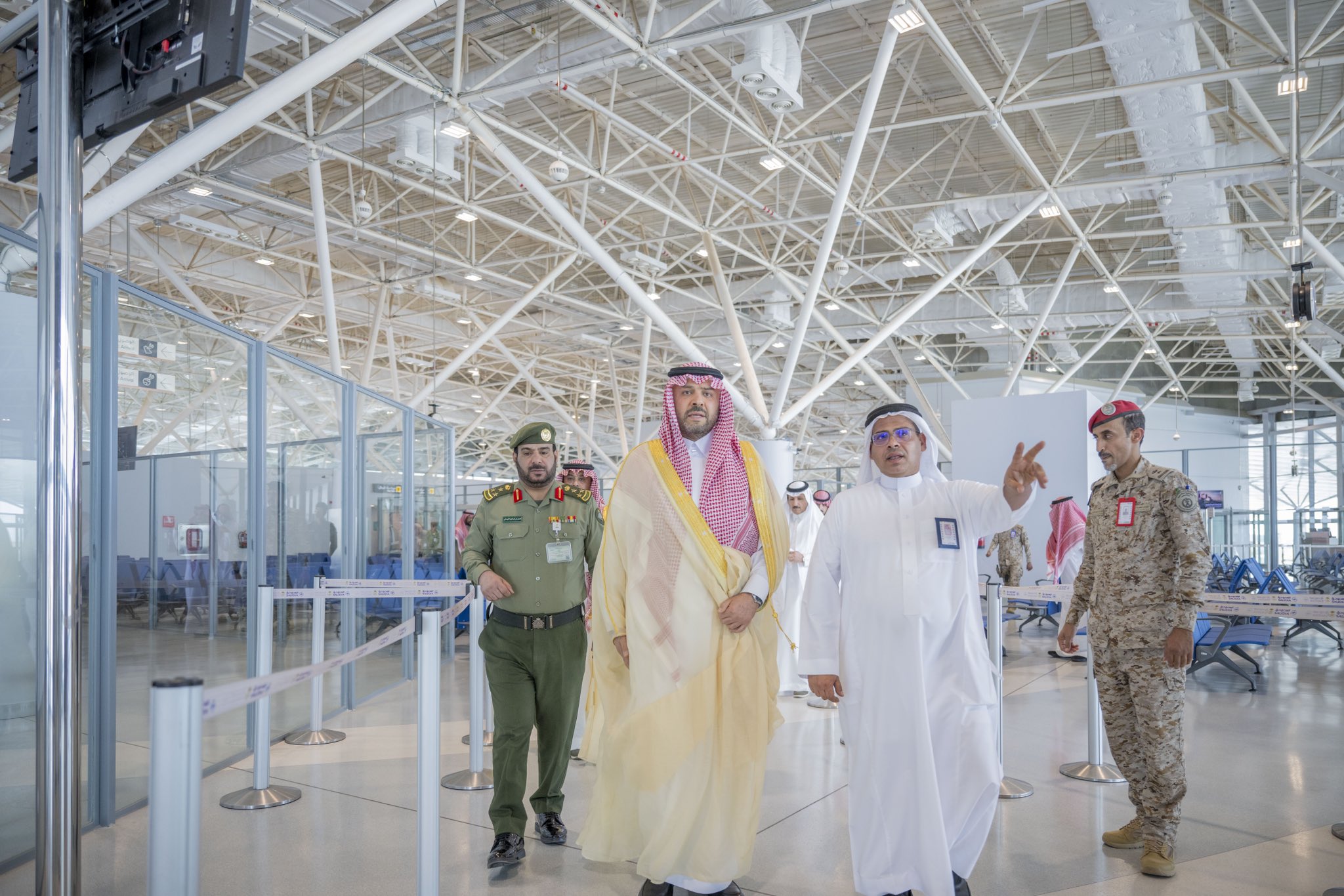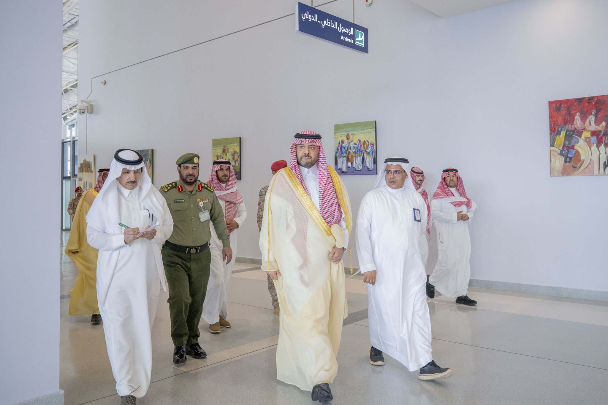 تفقد صاحب السمو الملكي الأمير فيصل بن خالد بن سلطان بن عبد العزيز أمير منطقة الحدود الشمالية , اليوم، صالة السفر الدولية بمطار عرعر ، وما تقدمه من خدمات للمسافرين ، واستمع لشرح عن سير الاستعدادات لإنهاء إجراءات السفر الدولية من قبل مديرعام الجوازات بالمنطقة العميد حسين التيماني .