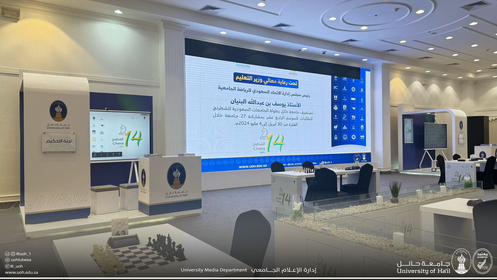 انطلقت اليوم في المدينة الجامعية بحائل، منافسات بطولة الشطرنج للجامعات السعودية التي ينظمها الاتحاد السعودي لرياضة الجامعات في موسمه الـ 14 للطالبات، المقرر أن تستمر حتى الرابع من مايو الجاري.