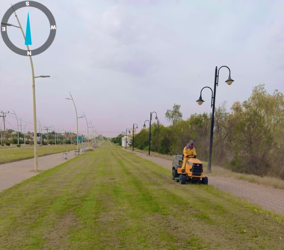 إدارة الخدمات في بلدية ابن شريم تواصل بشكل دوري المحافظة على كفاءة المسطحات الخضراء من خلال نظافتها وتهذيب أرضياتها الخضراء وصيانة أعمدة الإنارة