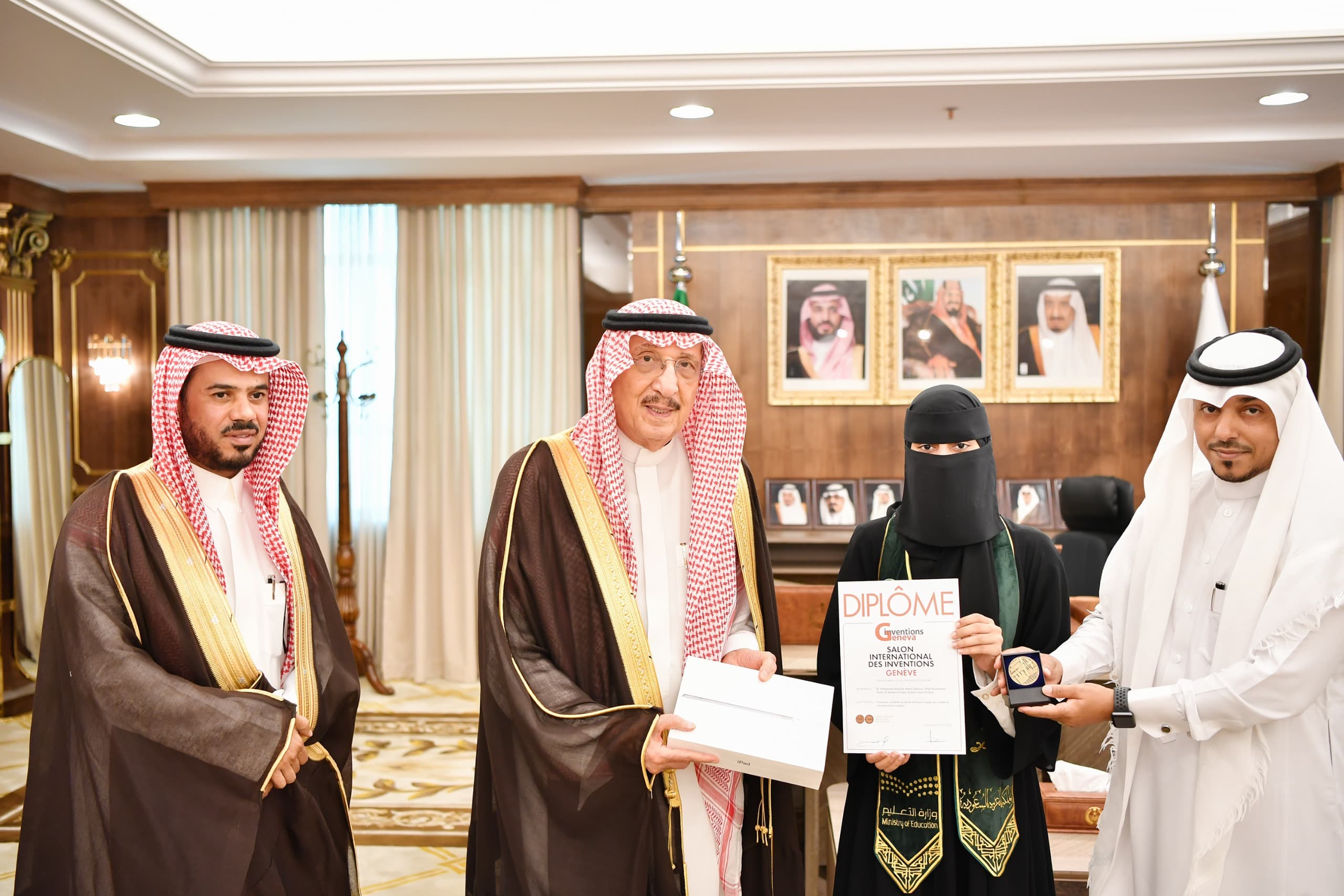 كرّم صاحب السمو الملكي الأمير محمد بن ناصر بن عبدالعزيز أمير منطقة جازان الطالبة الموهوبة ملك بنت حسن القيسي لحصولها على الميدالية البرونزية على مستوى العالم خلال مشاركتها ضمن الفريق السعودي في المعرض الدولي للاختراعات باليكسبو - جنيف 2024م ، عبر ابتكارها تصميم ونمذجة ومحاكاة الطائرة دون طيار ثلاثية المروحية لتحسين الآلية المدمجة.