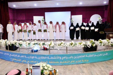كرّم المدير العام لإدارة التعليم بمنطقة الجوف محمد بن علي القحطاني الطلبة المتميزين في الأنشطة الطلابية والمنافسات الوطنية والبرامج والمسابقات على مستوى وزارة التعليم والإدارة العامة للتعليم بالمنطقة على مسرح الإدارات التعليمية.