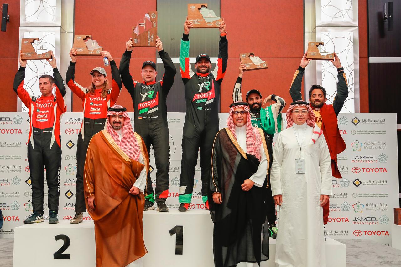 بعد ذلك توج صاحب السمو الملكي الأمير خالد بن سعود بن عبدالله الفيصل بن عبدالعزيز نائب أمير منطقة تبوك ، الحاصلين على المراكز الأولى في منافسات رالي تبوك تويوتا 2024.
