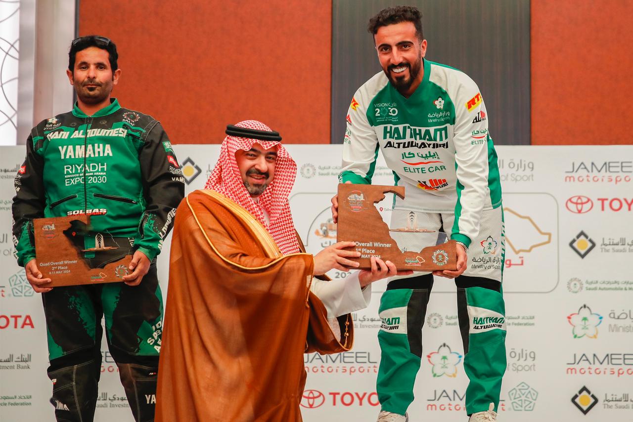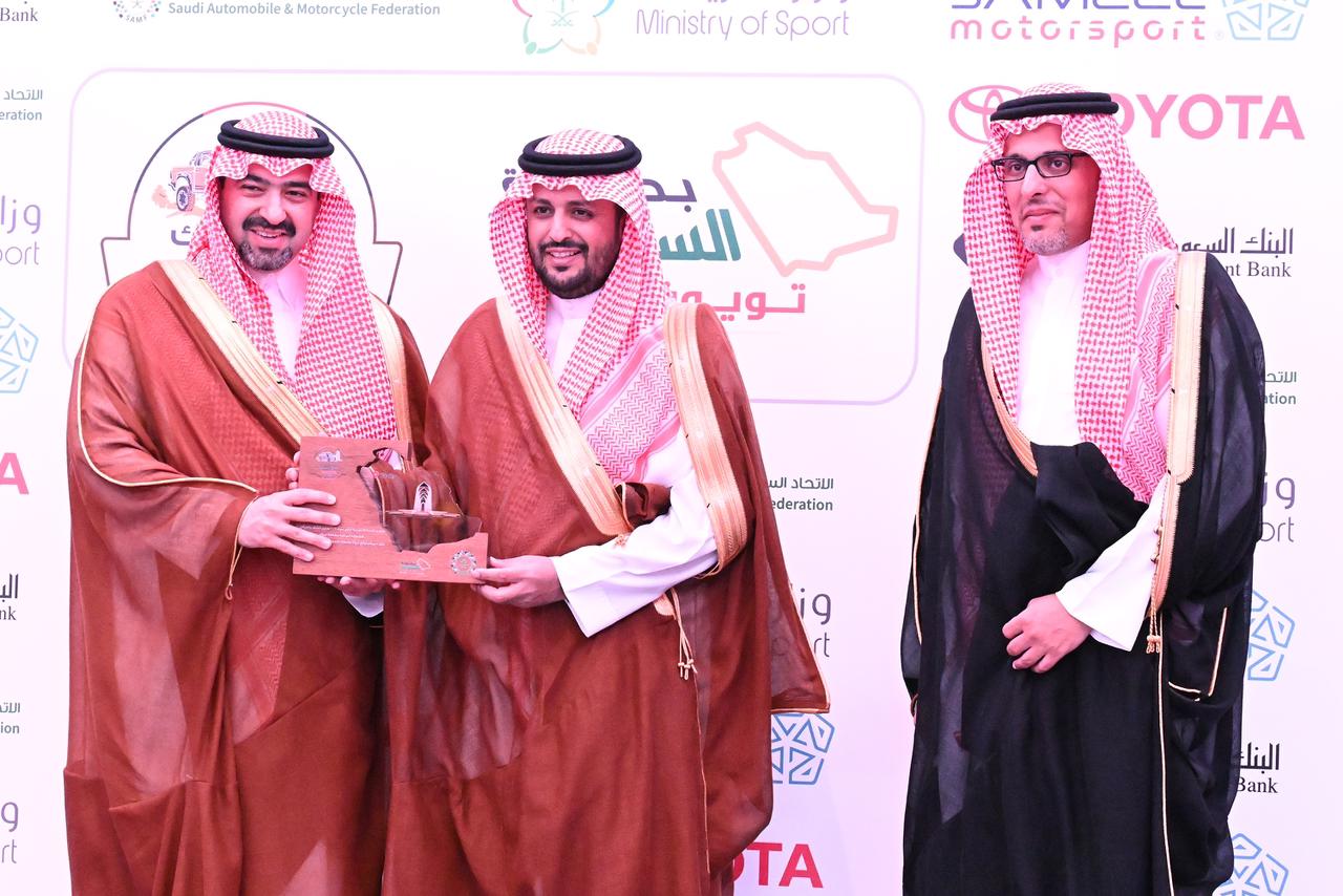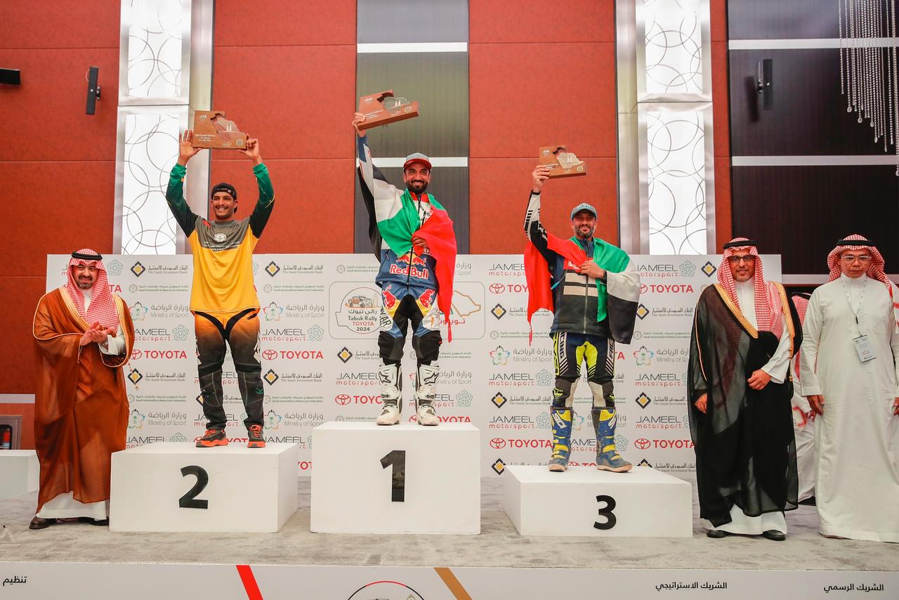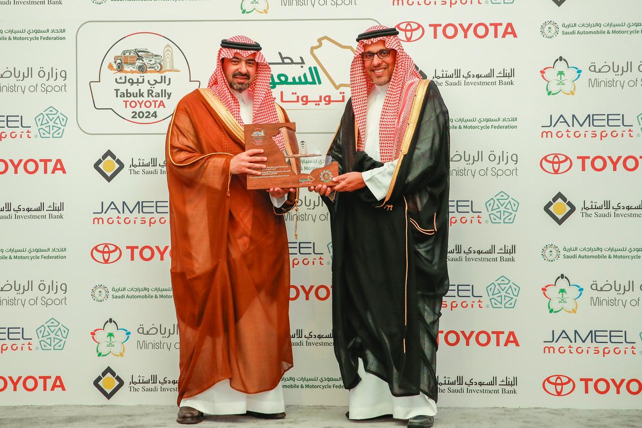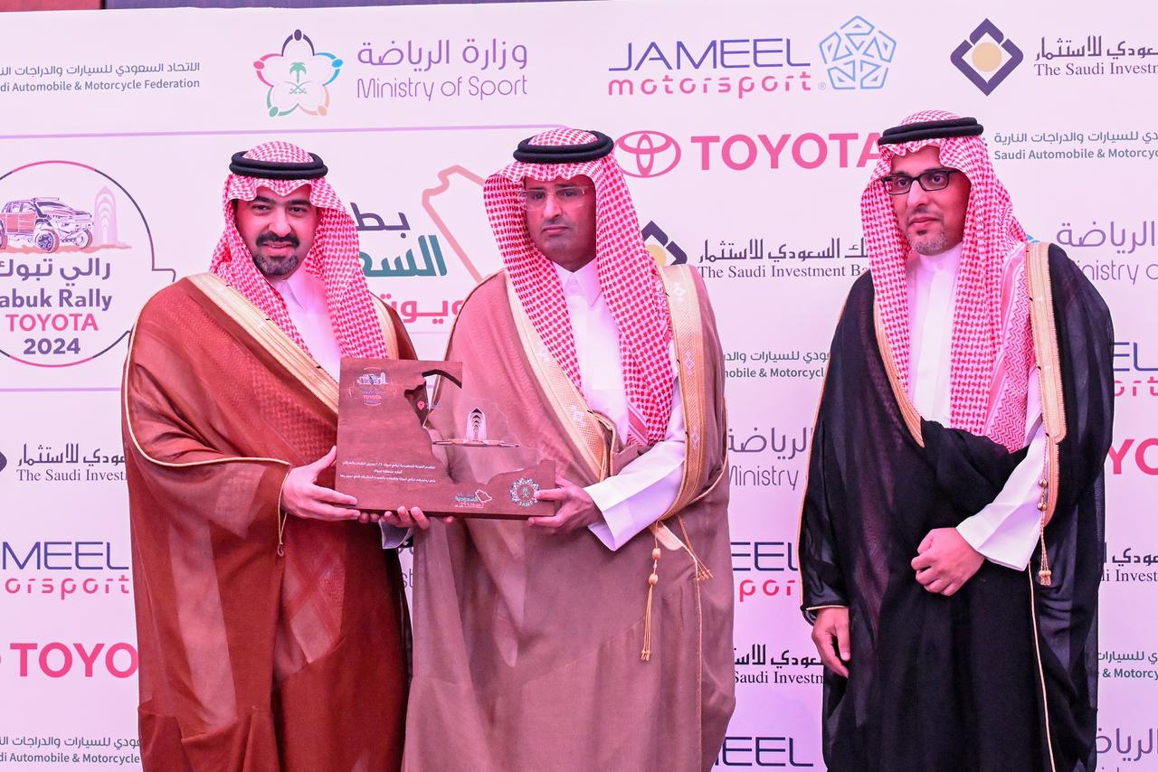 برعاية صاحبِ السموِّ الملكي الأمير فهد بن سلطان بن عبدالعزيز أمير منطقة تبوك، توج صاحب السمو الملكي الأمير خالد بن سعود بن عبدالله الفيصل بن عبدالعزيز نائب أمير منطقة تبوك , اليوم، الفائزين بـ " رالي تبوك تويوتا 2024"، ضمن الجولة الثانية من بطولة السعودية تويوتا للراليات، بحضور صاحب السمو الملكي الأمير خالد بن سلطان عبدالله الفيصل رئيس مجلس إدارة الاتحاد السعودي للسيارات والدرجات النارية، وذلك بقاعة الإحتفالات لفندق جراند ميلينيوم.