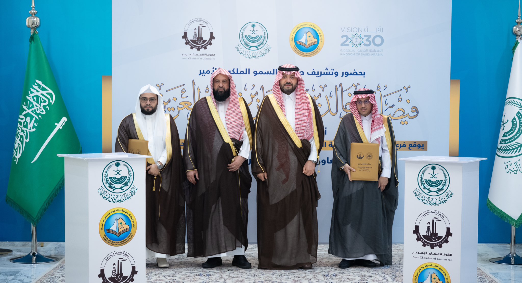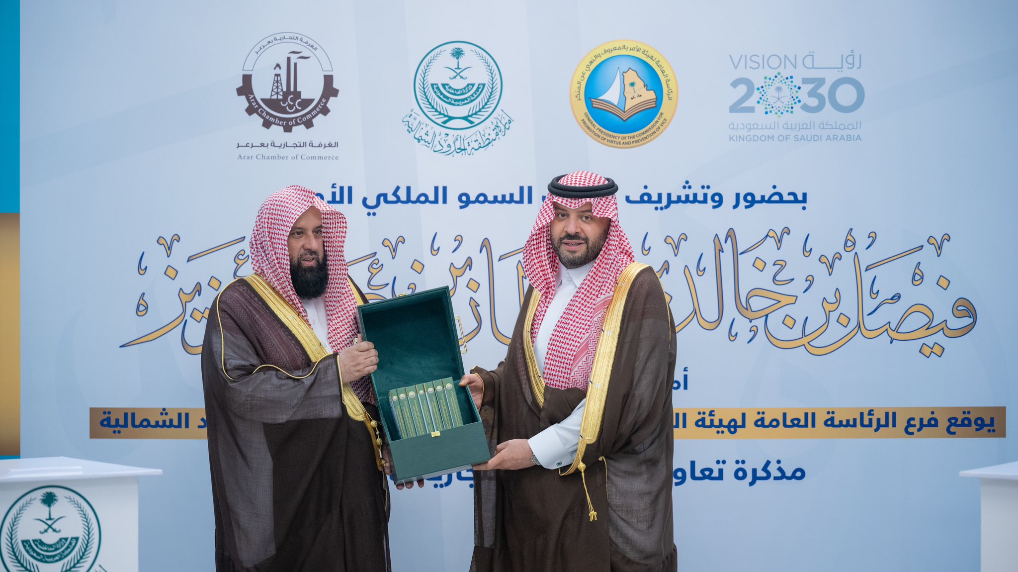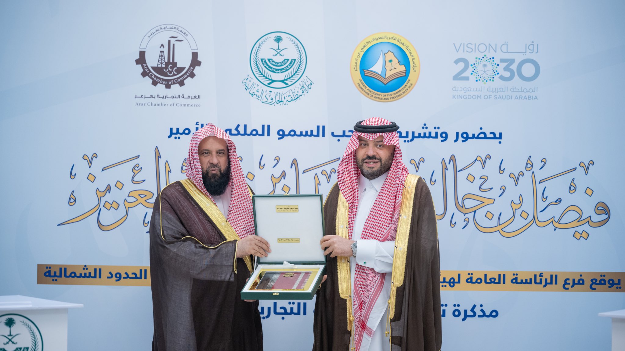 استقبل صاحب السمو الملكي الأمير فيصل بن خالد بن سلطان بن عبدالعزيز أمير منطقة الحدود الشمالية، بمكتبه اليوم، معالي الرئيس العام لهيئة الأمر بالمعروف والنهي عن المنكر الشيخ الدكتور عبدالرحمن بن عبدالله السند، والوفد المرافق له.