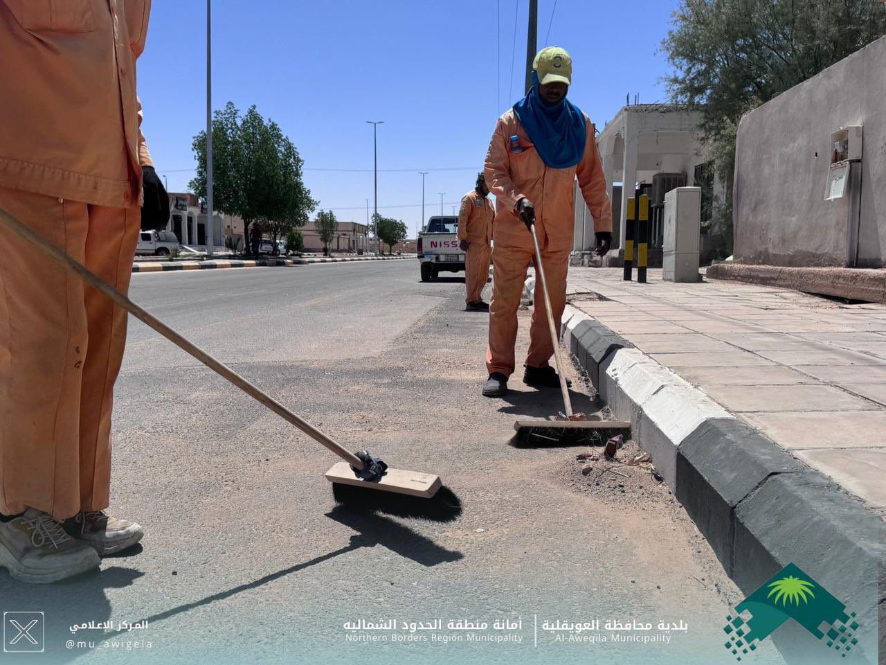 كثفت بلدية محافظة العويقيلة أعمال النظافة اليومية لأجل بيئة مستدامة وذلك ضمن حملة معالجة التشوه البصري المشتركة .