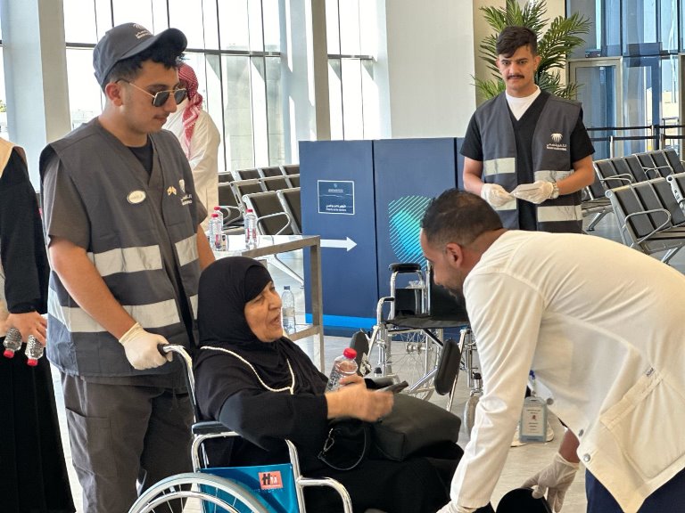 يواصل أبطال التطوع الصحي بتجمع الحدود الشمالية الصحي خدمة حجاج بيت الله الحرام عبر منفذ جديدة عرعر.