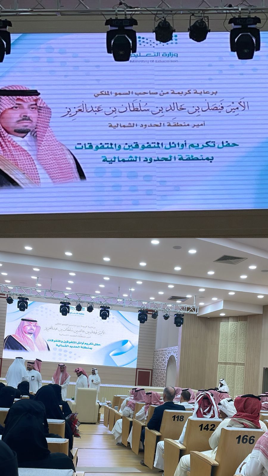 كرَّم صاحب السمو الملكي الأمير فيصل بن خالد بن سلطان بن عبدالعزيز أمير منطقة الحدود الشمالية اليوم، 220 من أوائل الطلاب والطالبات المتفوقين في تعليم المنطقة خلال العام الدراسي وذلك على مسرح الإدارة العامة للتعليم بمدينة عرعر.