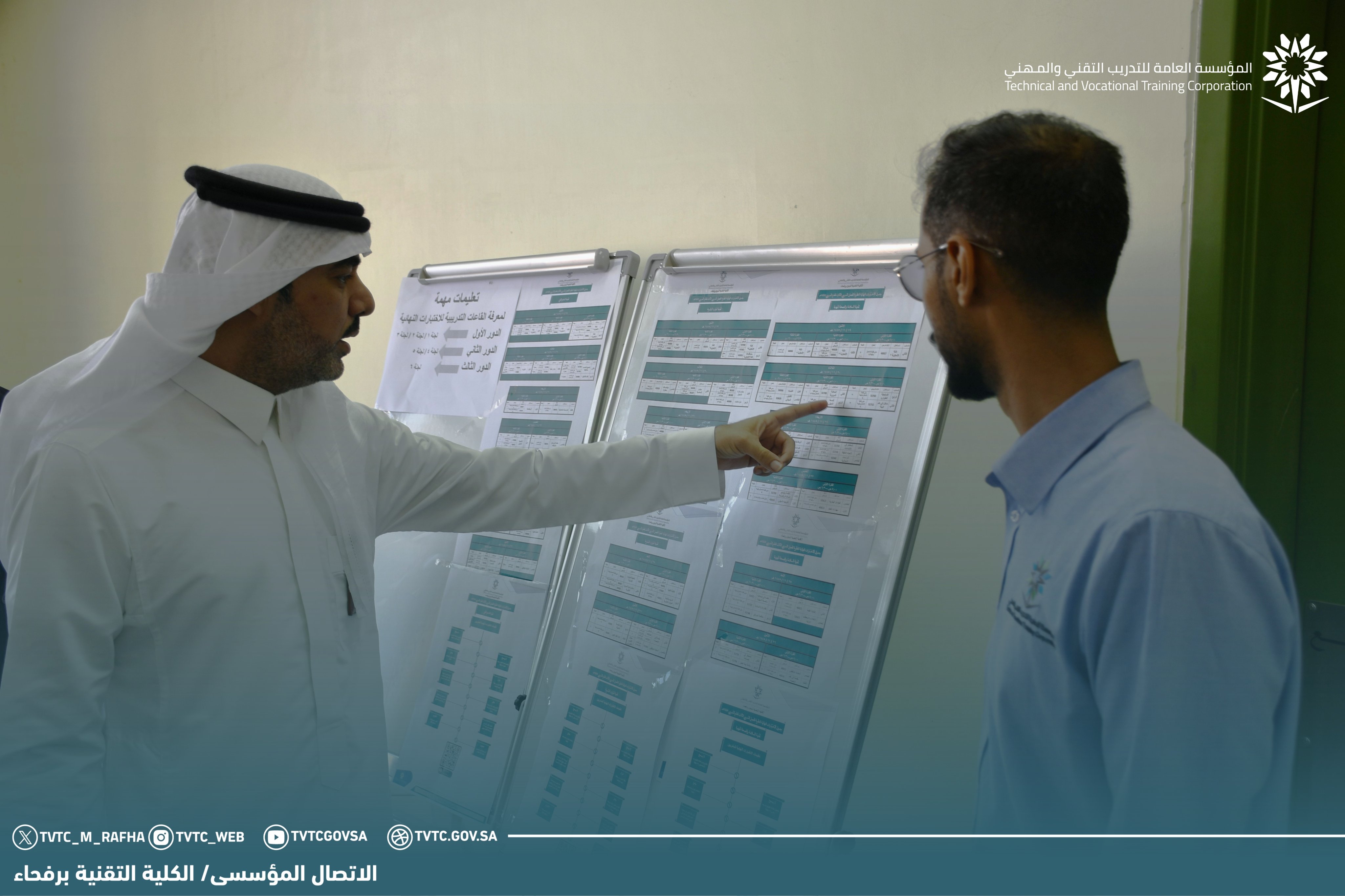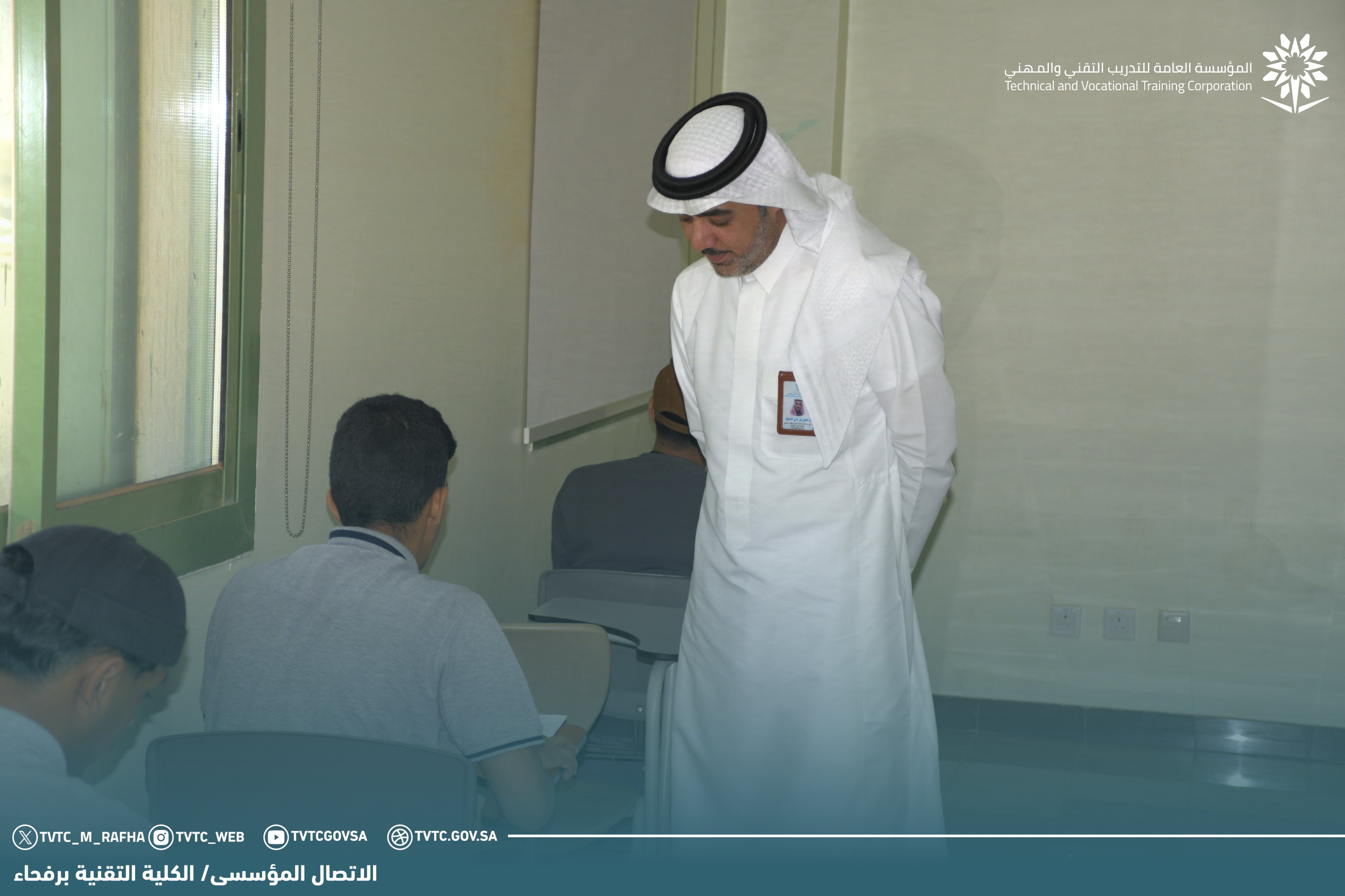 زار سعادة مدير عام التدريب التقني والمهني بمنطقة الحدود الشمالية المهندس/ حسن علي السليم الكلية التقنية برفحاء للإطلاع على سير الاختبارات النظرية النهائية للفصل التدريبي الثالث من العام التدريبي 1445هـ