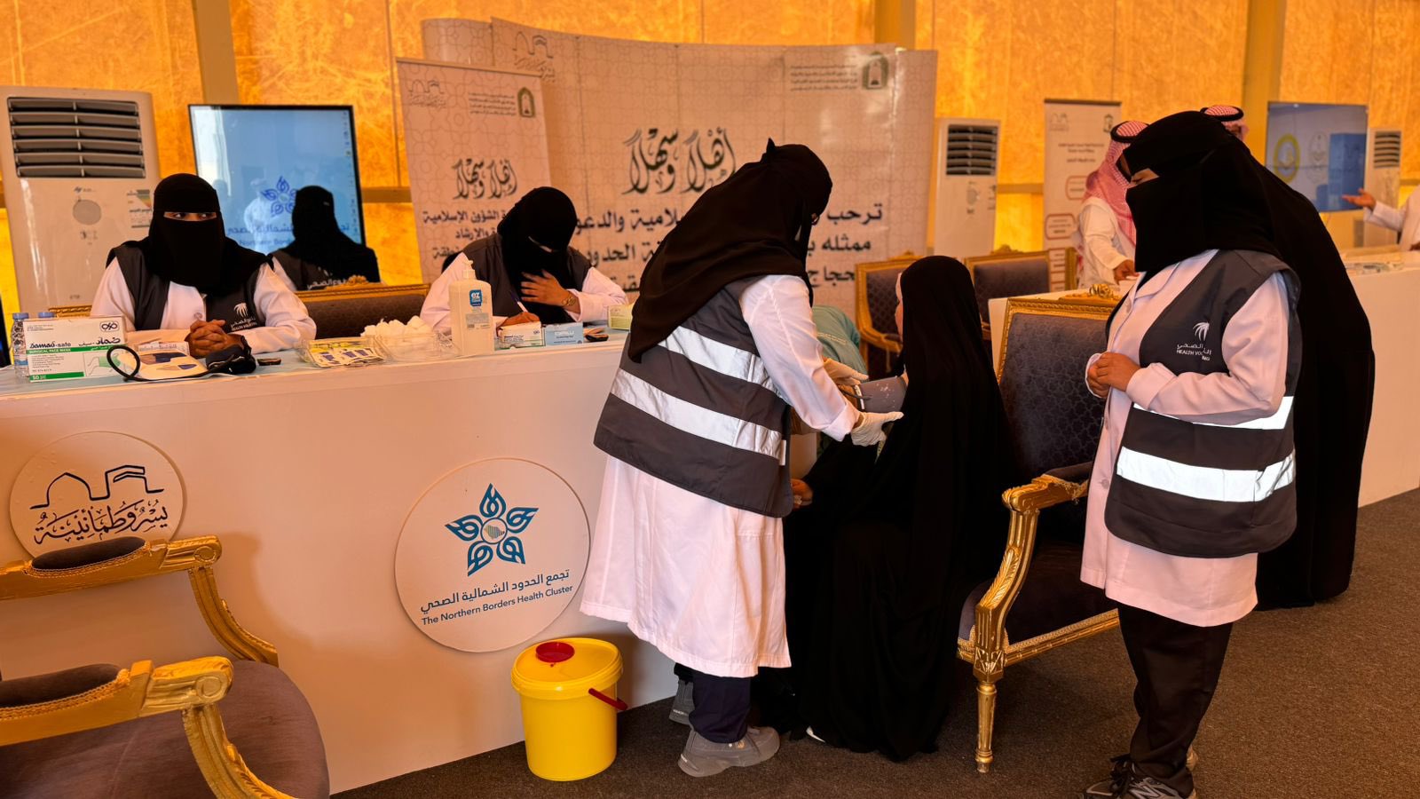 يواصل أبطال التطوع الصحي بتجمع الحدود الشمالية الصحى تقديم الخدمات لضيوف الرحمن في منفذ جديدة عرعر البري .