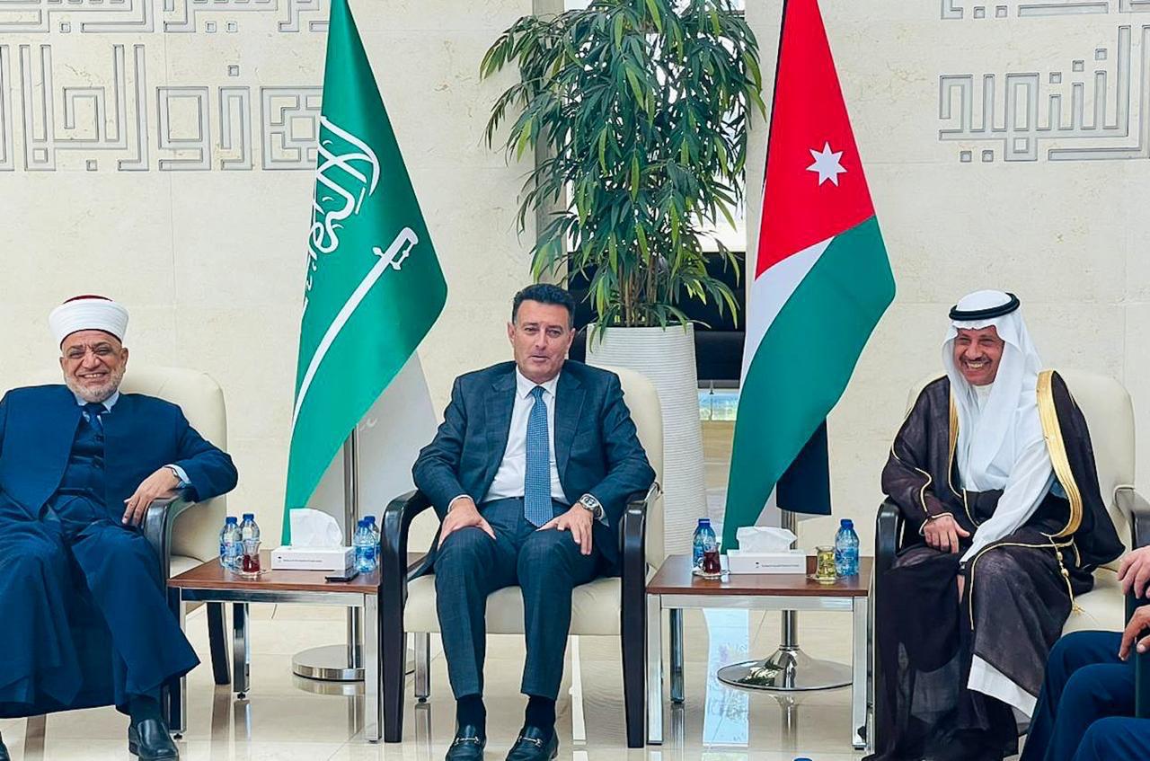 ودع سفير خادم الحرمين الشريفين لدى الأردن نايف بن بندر السديري في السفارة اليوم، قافلة حجاج بيت الله الحرام ضمن برنامج ضيوف خادم الحرمين الشريفين الملك سلمان بن عبدالعزيز آل سعود- حفظه الله-، بحضور معالي وزير الاوقاف الاردني الدكتور محمد الخلايلة، وسعادة رئيس مجلس النواب الاردني أحمد الصفدي.