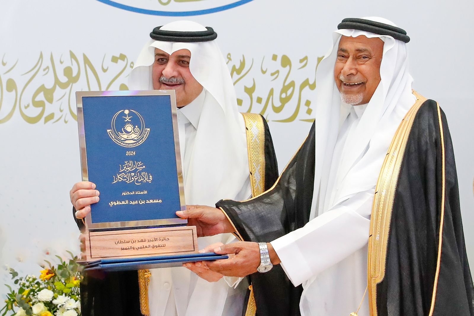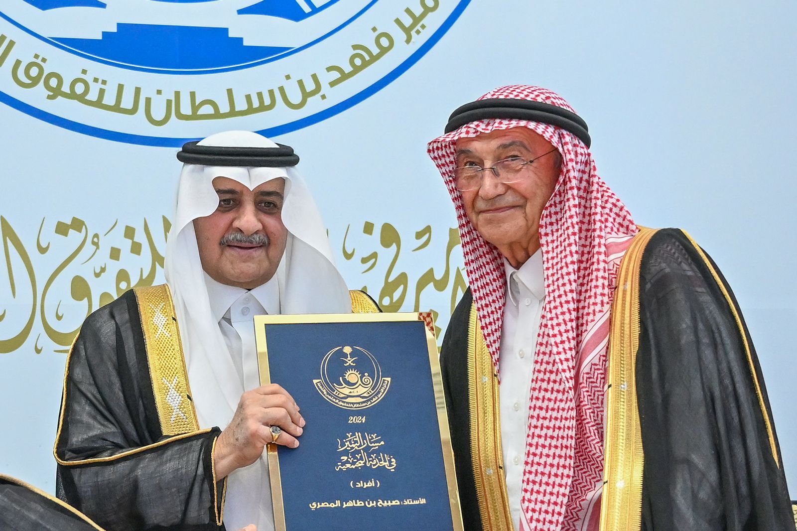 بعد ذلك كرّم سموه الفائزين والفائزات في الجائزة، ففي مجال التميز بالإبداع والابتكار، كرم سموه الدكتور مسعد بن عيد العطوي نظير إسهاماته في العديد من المجالات الإبداعية العلمية والثقافية، حيث يُعد أحد أبرز أدباء المملكة العربية السعودية المعاصرين. وصدر له مجموعة من المؤلفات التي تُعنى بتاريخ منطقة تبوك قديمًا وحديثًا، كما صدرت له العديد من الإصدارات في النقد الأدبي وبلغ عدد مؤلفاته (٣٤) مؤلفاً ، وفي مجال الخدمة المجتمعية ( أفراد )، كرم سموه صبيح بن طاهر المصري نظير إسهاماته في العديد من المجالات المجتمعية والخيرية إلى جانب إسهاماته في القطاع التعليمي والصحي بالمنطقة، كما كرم سموه في مجال التميز بالخدمة المجتمعية ( منشآت )، أوقاف العرادي الخيرية ، نظير مساهمتهم المجتمعية المتميزة في مدينة تبوك ومحافظاتها والموجهة لتنمية المجتمع والخدمة المجتمعية والقطاع غير الربحي، ثم كرم سموه الفائزين والفائزات في مجال التفوق العلمي البالغ عددهم ( 34 ) فائزاً وفائزة، متمنياً سموه لهم دوام التوفيق والسداد، في خدمة دينهم ثم مليكهم والوطن.