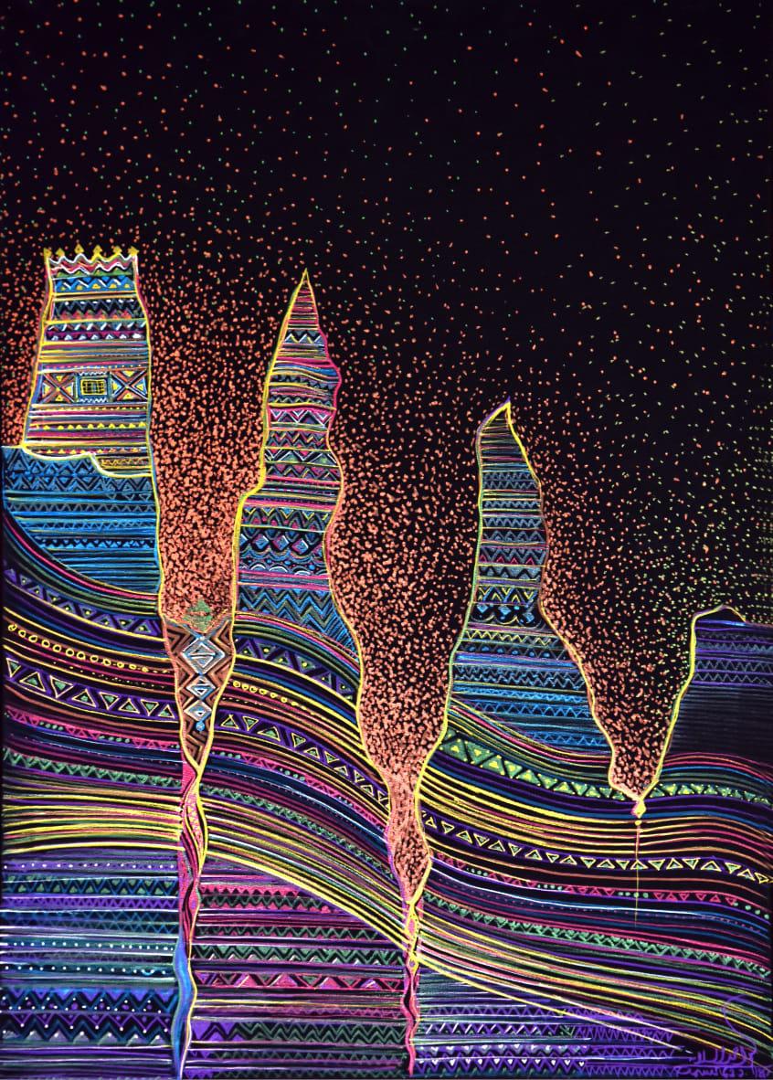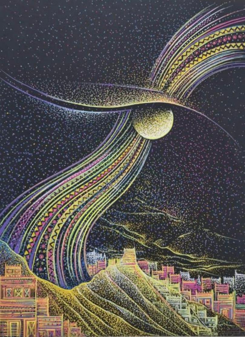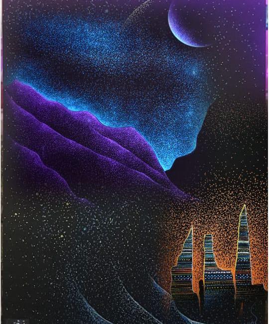 لقب بفنان المليار نقطة لاستطاعنه أن يرسم بريشته المشهد الجميل الذي ينطق من خلال انعكاس نور القمر على جمال الجبال الشاهقة