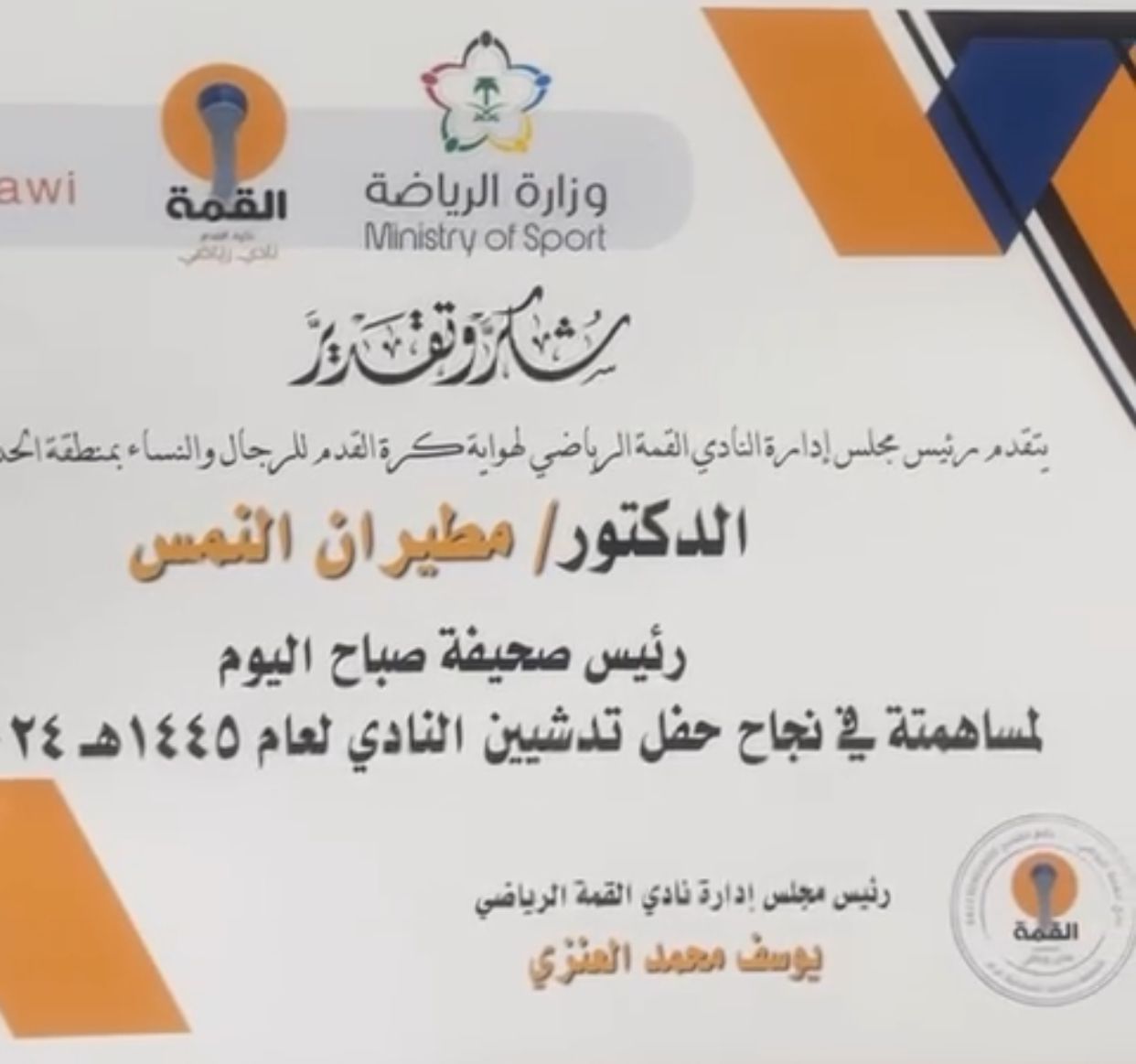 احتفت إدارة نادي القمة الرياضي لهواة كرة القدم للرجال والنساء بمدينة عرعر بانطلاق مسيرتها وتدشين حسابها الرسمي عبر منصة (X ) في حفل بهيج شهد حضور مدير المدينة الرياضية بعرعر والرعاة الرسميين للحفل والنادي وعدد من مديري الجمعيات الأهلية ، ومحبي وهواة الرياضة ، ويعتبر هذا النادي هو أول نادي رياضي من نوعه على مستوى منطقة الحدود الشمالية ، يقع تحت مظلة جمعية الهواة على مستوى المملكة ، المعتمدة ضمن برنامج جودة الحياة وتظم اثنا عشر وزارة كشريك رئيسي في هذه الجمعية ، واختير هذا النادي ليكون تحت الإشراف البرامجي في الإدارة العامة للجمعيات والمؤسسات الأهلية بوزارة الرياضة وإشراف فرع وزارة الرياضة بمنطقة الحدود الشمالية ، واشتمل الحفل على كلمة رئيس النادي يوسف محمد العنزي وعرض مرئي تعريفي بالنادي وتم تكريم شركاء النجاح من الرعاة الرسميين والمتعاونين في إنجاح هذه الفعالية ، جدير بالذكر أن النادي يقدم الدورات التدريبية والمهارية في مجال كرة القدم وينظم البطولات الرياضية ،ويسعي للتثقيف الرياضي، ويحتوي هواة كرة القدم .