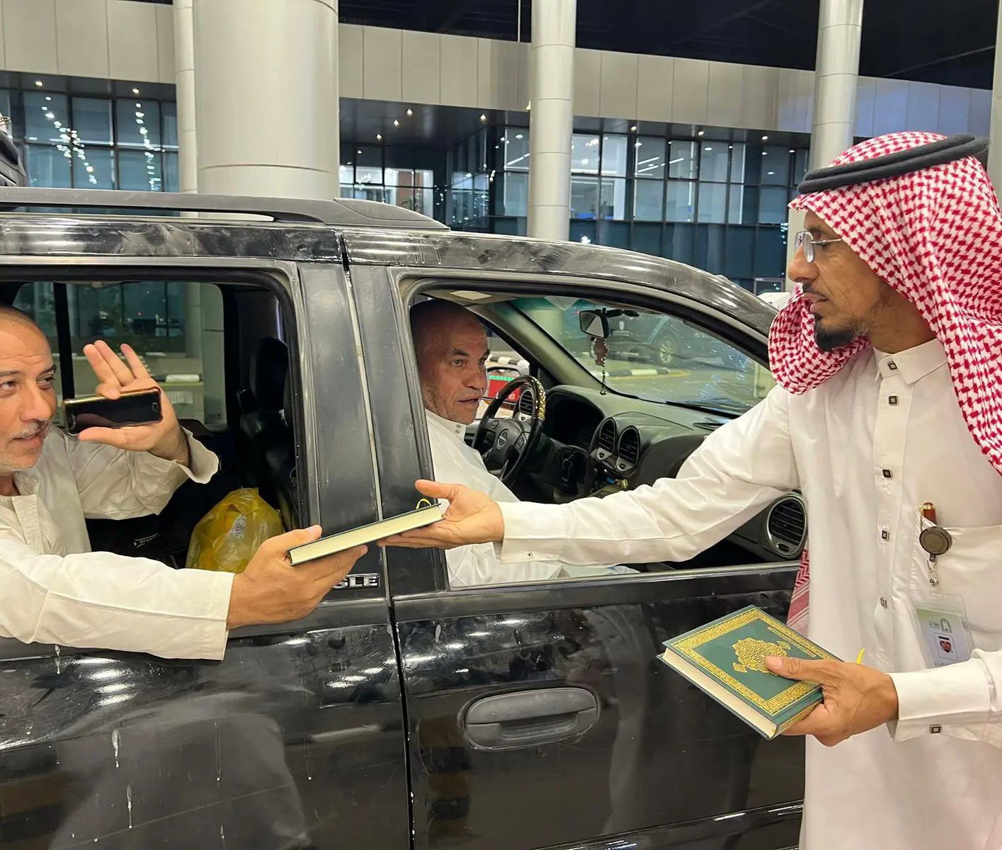 وزعت وزارة الشؤون الإسلامية والدعوة والإرشاد، ممثلة بفرعها في منطقة الجوف، أمس، هدية خادم الحرمين الشريفين الملك سلمان بن عبدالعزيز آل سعود - حفظه الله - من القرآن الكريم من إصدارات مجمع الملك فهد لطباعة المصحف الشريف، على الحجاج المغادرين إلى بلادهم عبر منفذ الحديثة، حيث سيتم توزيع (32.896) ألف نسخة خلال الأيام القادمة.