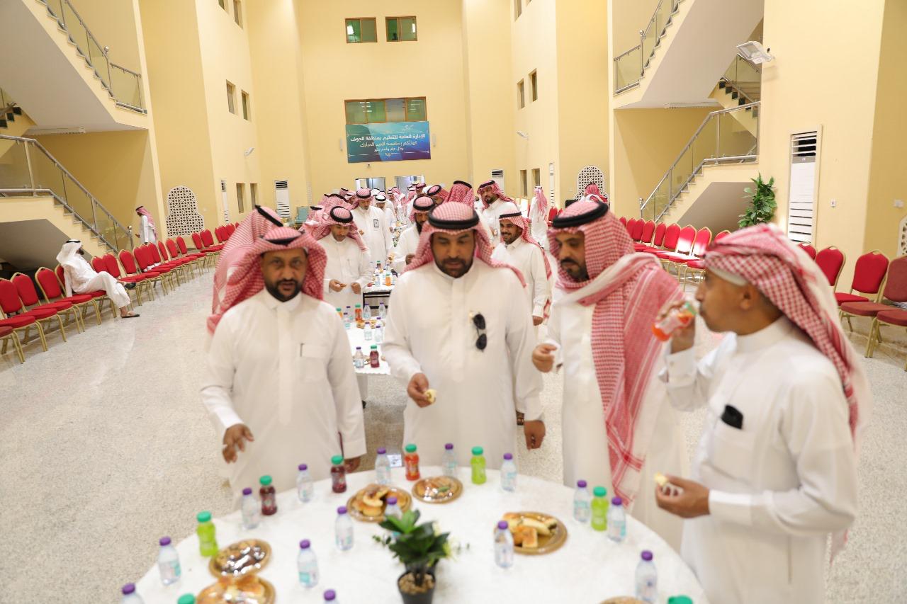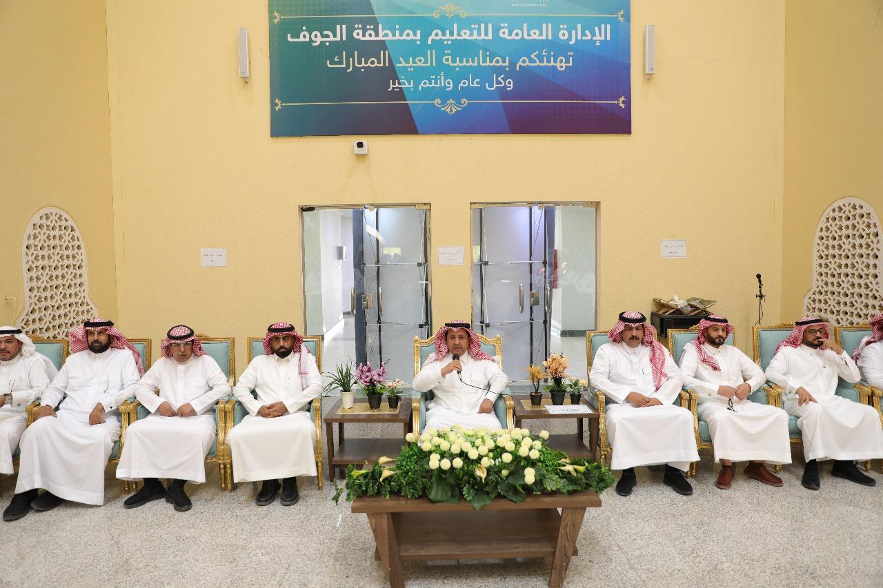 حيث التقى المدير العام للتعليم بمنطقة الجوف الأستاذ محمد بن علي القحطاني، مع المساعدين ومديري الإدارات والأقسام والموظفين وتبادلوا التهاني في جو سادته الألفة والمودة، وتناول الجميع المرطبات والحلويات في حفل بهيج.