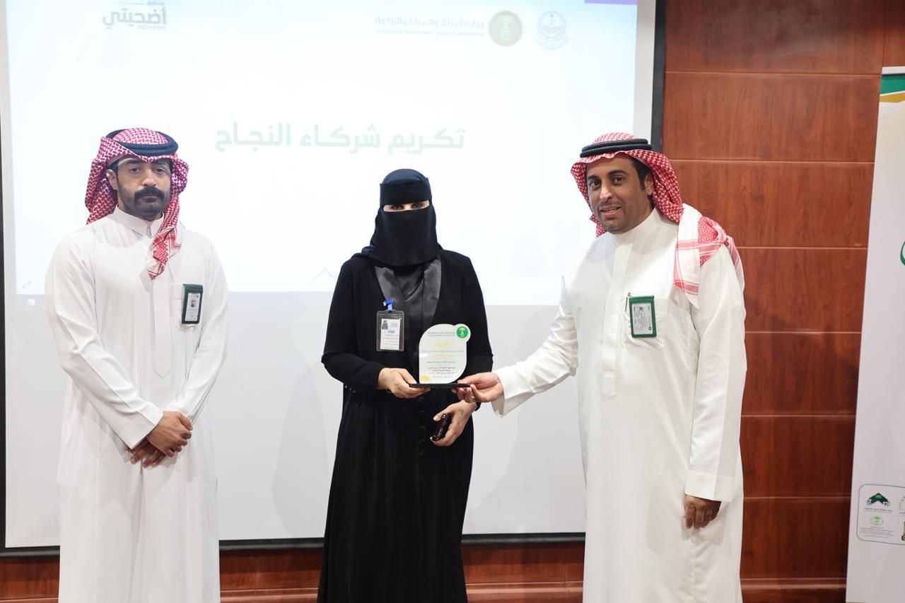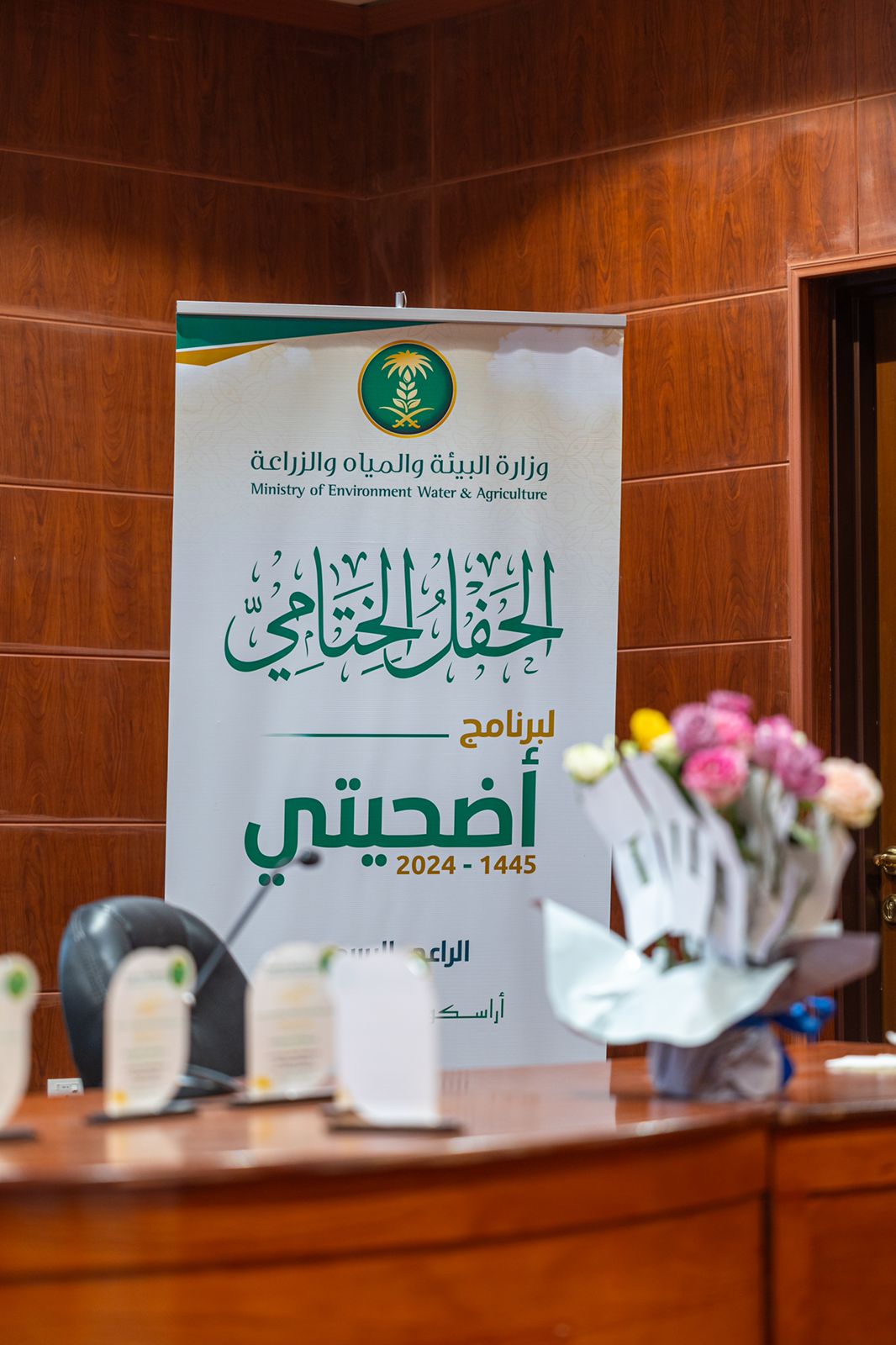 أقام فرع وزارة البيئة والمياه والزراعة اليوم الأحد الموافق 17 ذو الحجة 1445هـ حفل معايدة لمنسوبي المنظومة البيئة بالمنطقة والحفل الختامي لبرنامج اضحيتي 45 وتكريم شركاء النجاح من جميع القطاعات بحضور سعادة مدير عام فرع الوزارة بالمنطقة المهندس بندر بن صالح الهديه