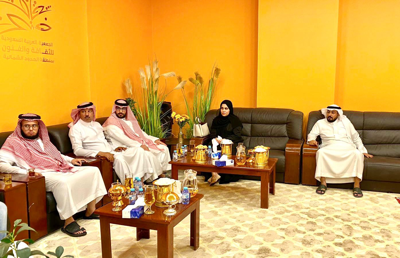 استقبل الأستاذ خلف بن حمود القاران مدير فرع جمعية الثقافة والفنون بالمنطقة أمين عام مجلس منطقة الحدود الشمالية الدكتورة هنوف القحطاني والوفد المرافق بمقر الجمعية العربية السعودية للثقافة والفنون بحضور أعضاء الجمعية .