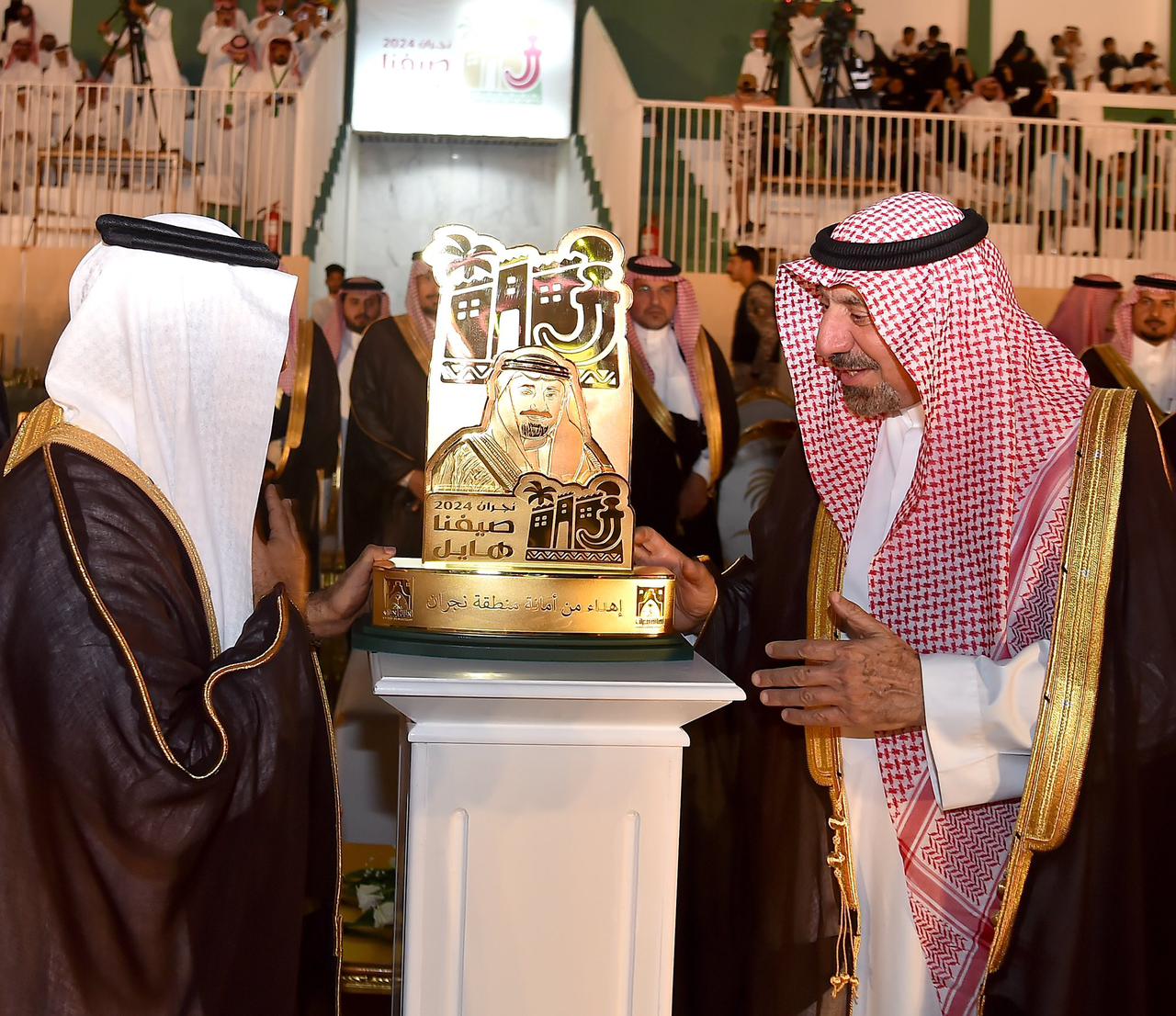 وفي ختام الحفل كرّم أمير منطقة نجران الجهات الحكومية والأهلية المشاركة والداعمة لفعاليات المهرجان، كما تسلّم هدية تذكارية بهذه المناسبة.