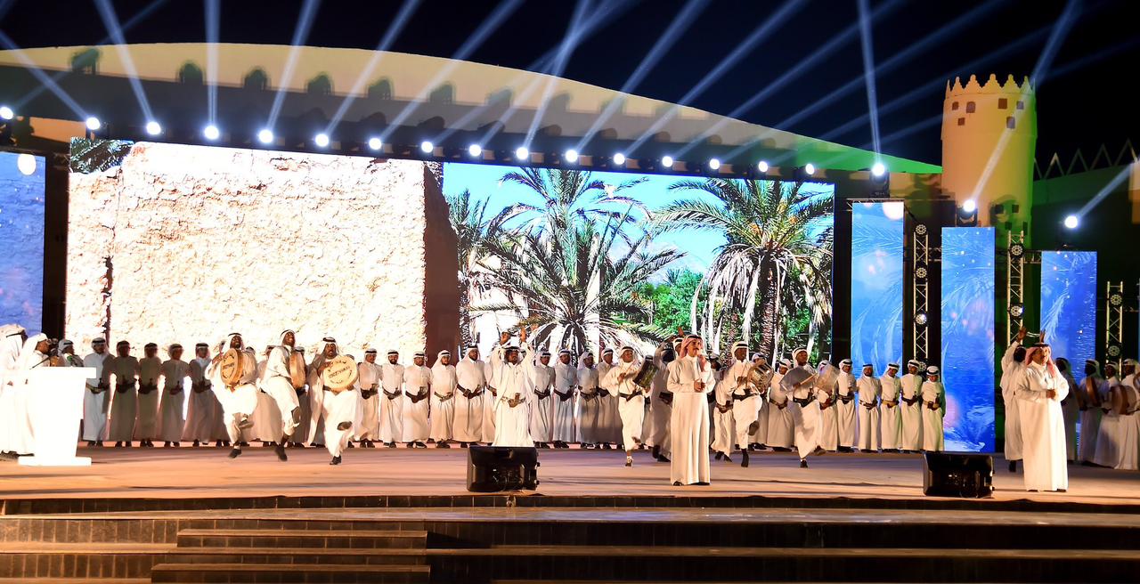 تلا ذلك أوبريت وطني بمشاركة الفرق الشعبية أدت خلاله ألواناً فلكلورية من التراث الشعبي الذي تشتهر به المنطقة.