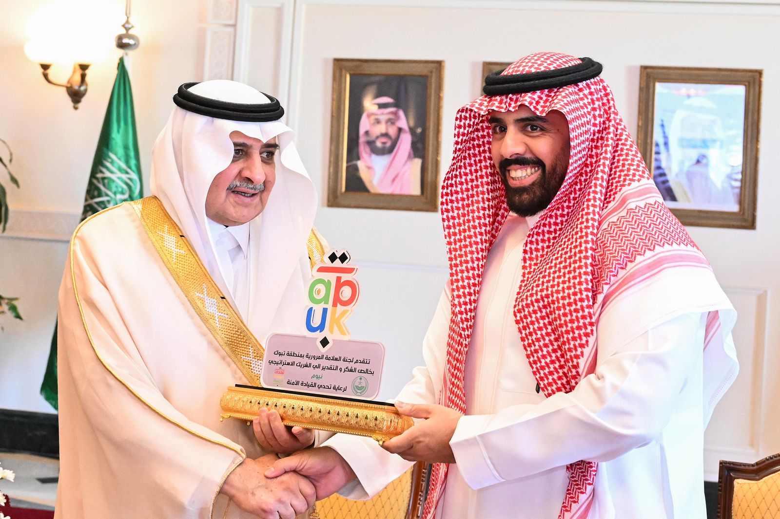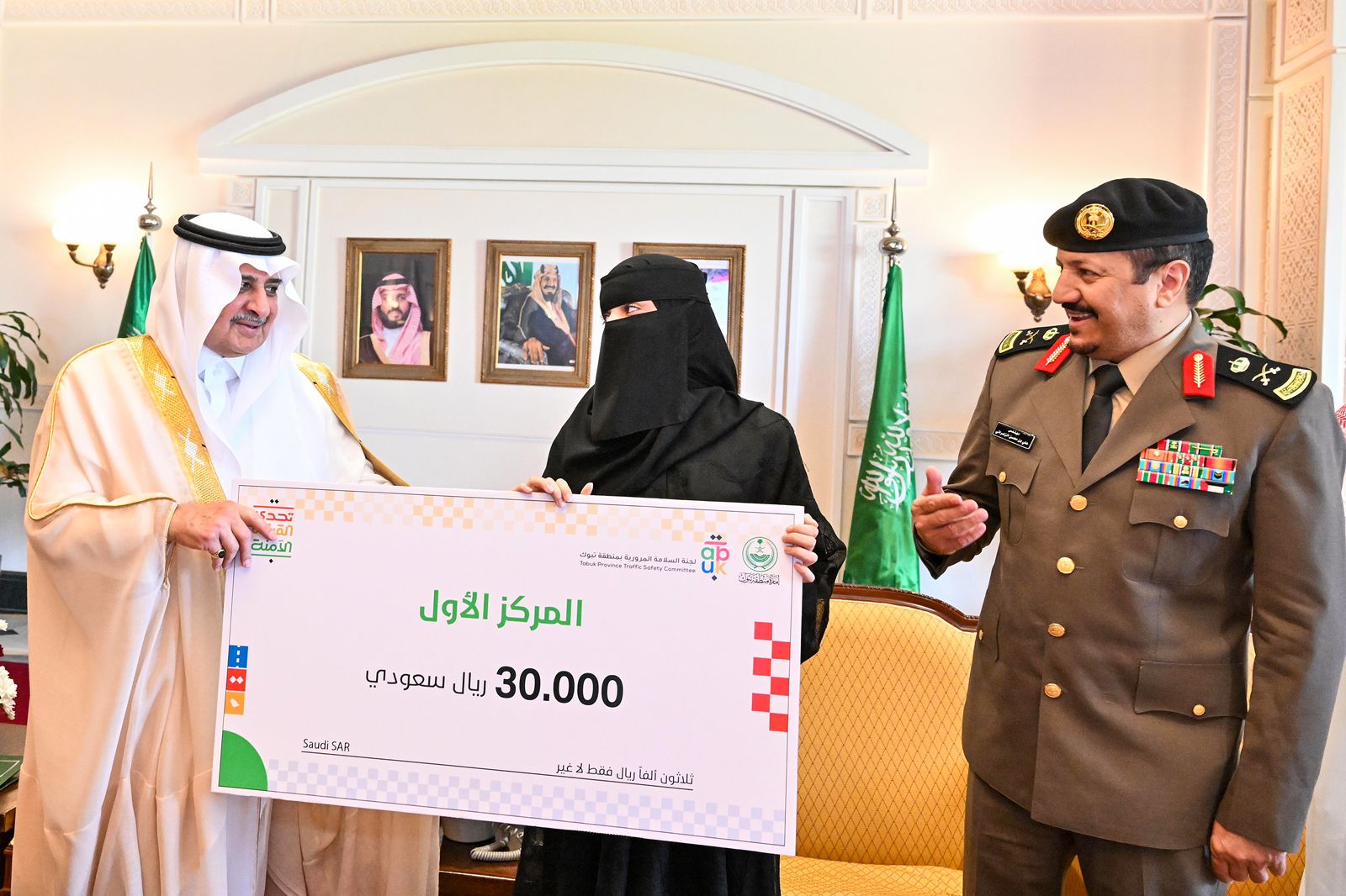 رعى صاحب السمو الملكي الأمير فهد بن سلطان بن عبد العزيز أمير منطقة تبوك رئيس اللجنة العليا للسلامة المرورية بالمنطقة، بديوان الأمارة اليوم، بحضور صاحب السمو الملكي الأمير خالد بن سعود بن عبدالله الفيصل بن عبدالعزيز، نائب أمير منطقة تبوك؛ حفل تكريم الفائزين بمسابقة تحدي القيادة الآمنة بالمنطقة في نسختها الأولى، والتي أقيمت بالتعاون مع شركة نيوم والأمانة العامة للجنة السلامة المرورية. وأستمرت لمدة 5 أشهر، تحت عنوان "تحدي القيادة الآمنة"، وهدفت إلى تعزيز السلامة المرورية للوقاية من الحوادث وأضرارها، وتحسين سلوك قائدي المركبات بمنطقة تبوك والحفاظ على سلامتهم، إلى جانب تشجيع أفراد المجتمع على القيادة الآمنة.