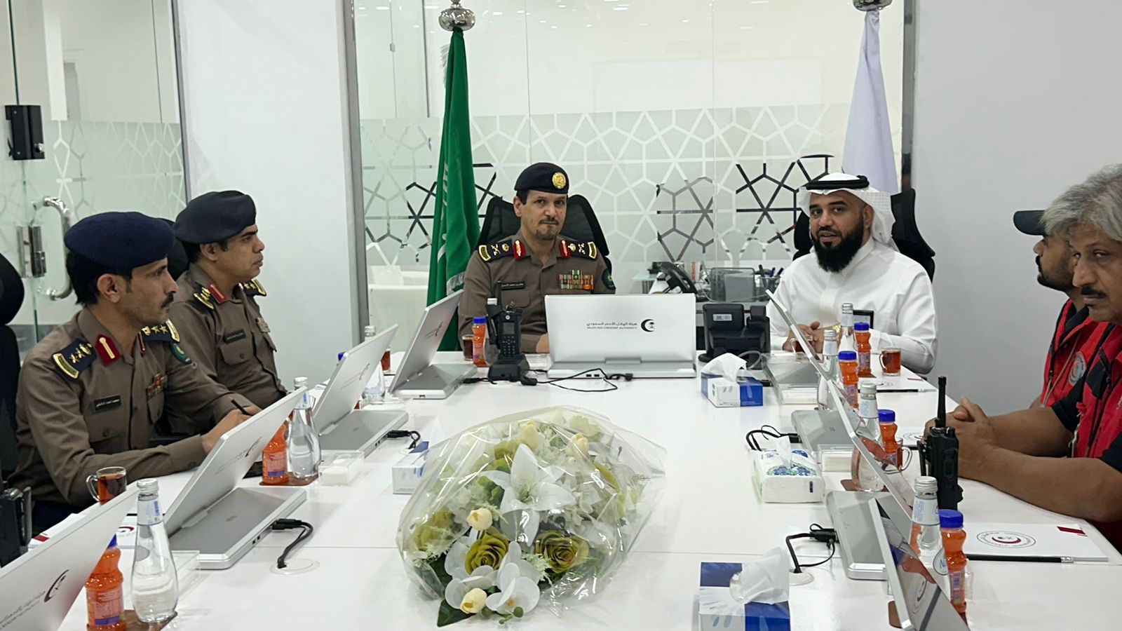 التقى مدير عام فرع هيئة الهلال الأحمر السعودي بمنطقة تبوك نواف بن مياح العنزي أمس في مقر فرع الهيئة، مدير الدفاع المدني بالمنطقة اللواء ظافر بن محمد الأسمري .