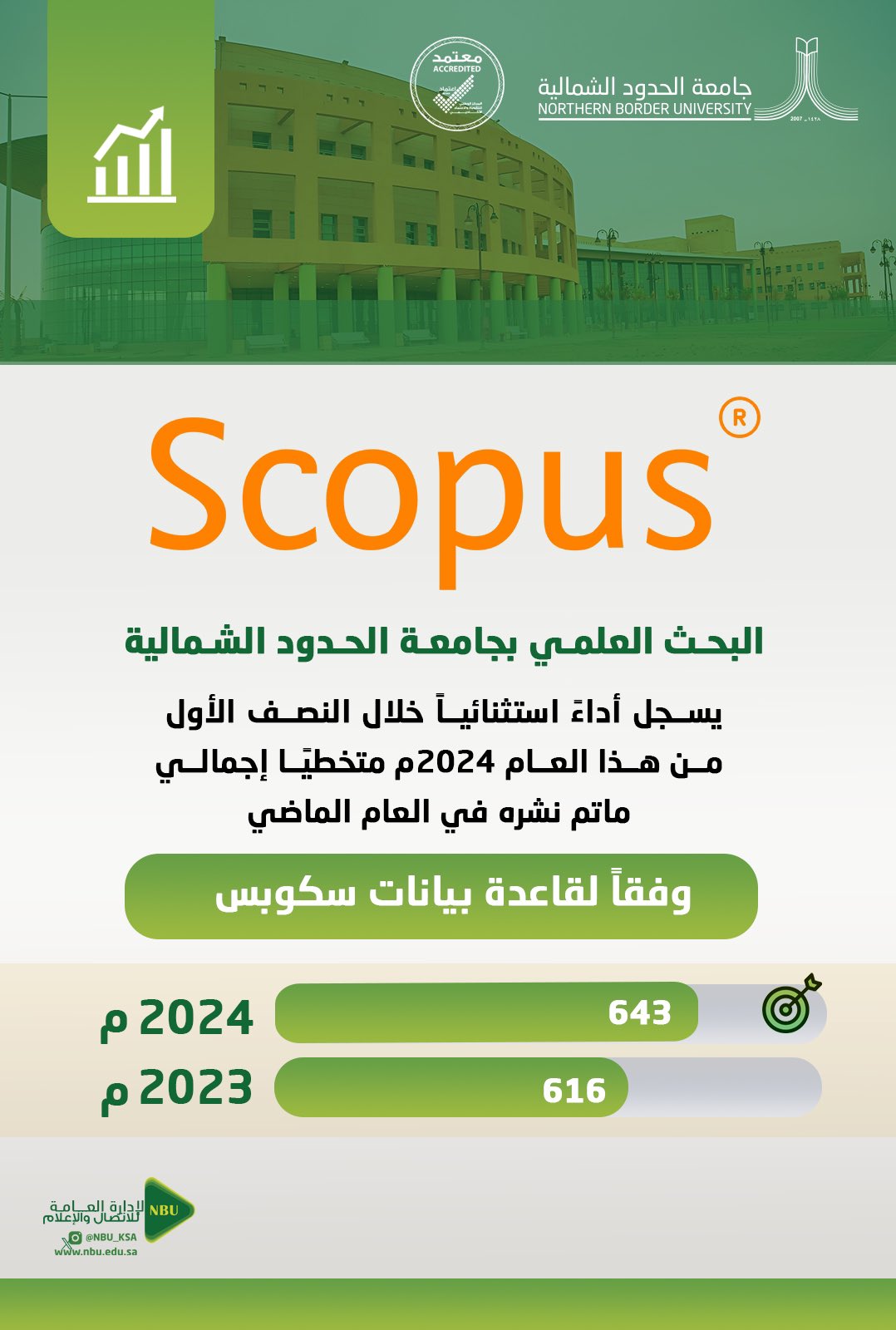 سجل البحث العلمي بجامعة الحدود الشمالية أداءً استثنائياً خلال النصف الأول من هذا العام (٢٠٢٤م) متخطيًا إجمالي ماتم نشره في العام الماضي
