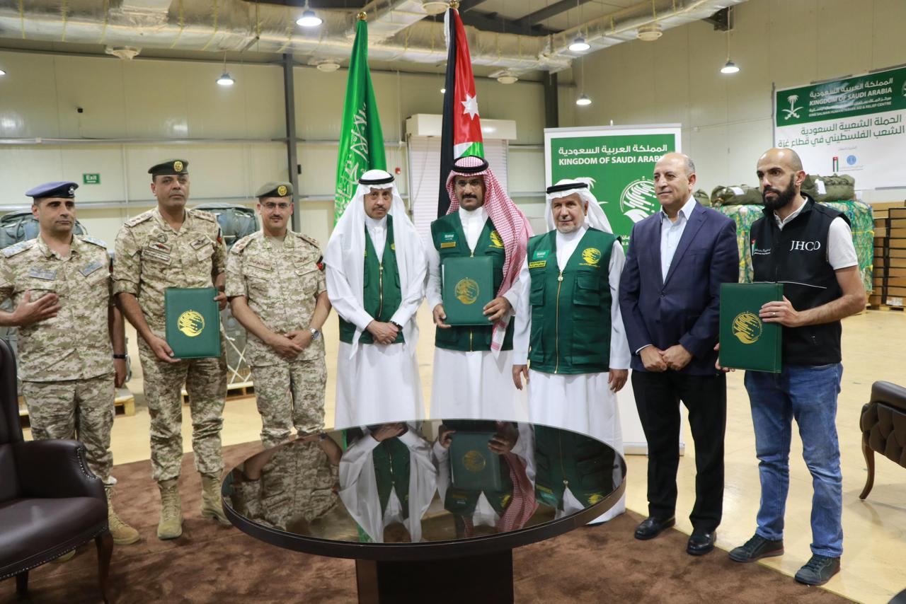 قدمت المملكة العربية السعودية بحضور معالي المستشار بالديوان الملكي المشرف العام على مركز الملك سلمان للإغاثة والأعمال الإنسانية الدكتور عبدالله بن عبدالعزيز الربيعة أمس ،مساعدات غذائية للمملكة الأردنية الهاشمية ممثلة بالهيئة الخيرية الأردنية الهاشمية؛ ليتم تسليمها إلى القوات المسلحة الأردنية الهاشمية (الجيش العربي) والجهات ذات العلاقة؛ لإيصالها إلى الشعب الفلسطيني في قطاع غزة عبر عملية الإسقاط الجوي، وذلك ضمن الحملة الشعبية السعودية لإغاثة الشعب الفلسطيني في القطاع.