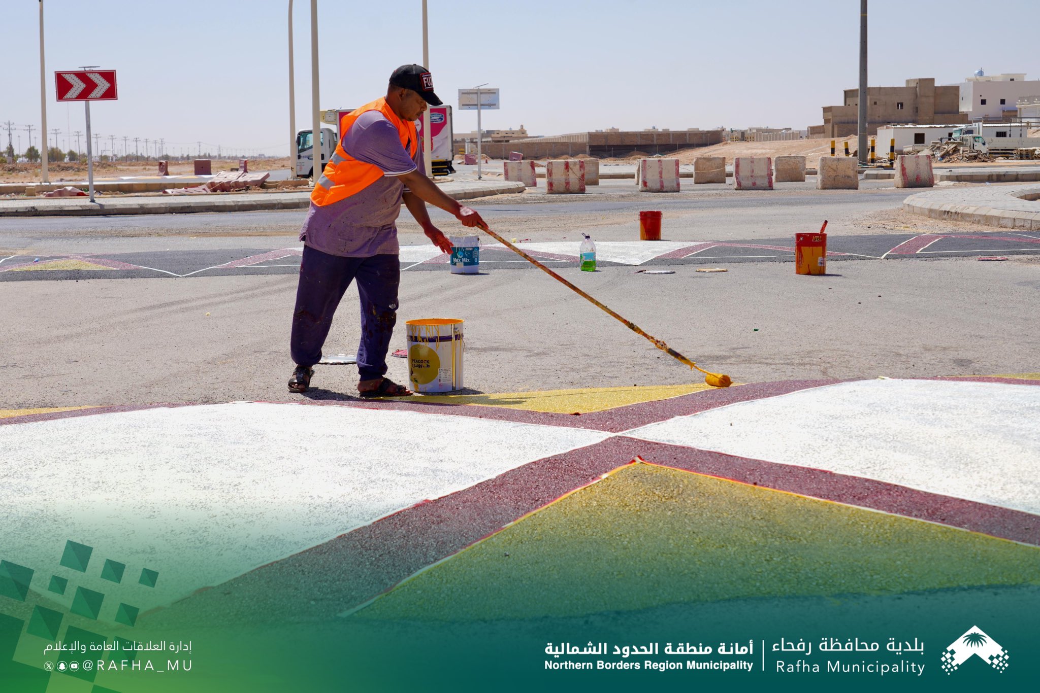 سعيا لتحسين المشهد الحضري، ورفع جودة الطرق وتطبيقاً لقواعد السلامة المرورية، تواصل بلدية محافظة رفحاء أعمال دهان المطبات الصناعية .